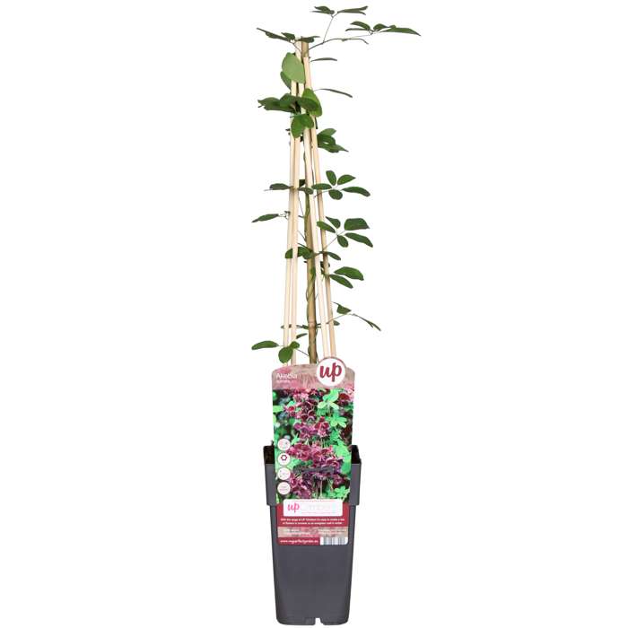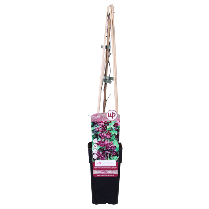 Akebia quinata‘ ist auch unter dem Namen Klettergurke bekannt und ist eine kräftige, aufrechte, halbimmergrüne Kletterpflanze mit einem weit ausladenden Wuchs. Die Blätter sind zusammengesetzt, fünfteilig und handförmig. Die Fiederblättchen sind eiförmig, lederartig und dunkelgrün bis blaugrün gefärbt. DieKlettergurke blüht im April und Mai mit kastanien- bis schokoladenroten, angenehm duftenden Blüten in hängenden Trauben, später folgen auffällige, gurkenähnliche, violett-lila Früchte. Akebia quinata bevorzugt einen halbschattigen Standort, aber auch volle Sonne ist möglich, solange der Boden ausreichend feucht ist und die Pflanze mit den Füßen im Schatten steht. Die Pflanze ist außerdem recht robust und, sobald sie sich etabliert hat, ziemlich trockenheitsresistent.