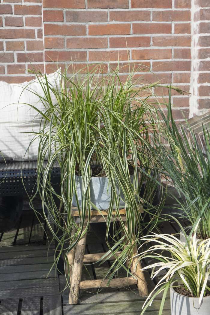 Carex Feather Falls‘ ist eine echte Terrassenpflanze für den Sommer! Die einzige Carex, die sowohl winterhart als auch sonnen- und hitzeverträglich ist. Diese kräftige Pflanze kann sogar mit wenig Wasser auskommen. Die Pflanze hat üppige grün-weiße Blätter, die an einen Wasserfall erinnern. Er eignet sich für den Garten, aber auch für den Balkon oder die Terrasse. Mit ihren langen Blättern kann sie auch in einen Hängetopf gestellt werden. Die Pflanze ist immergrün und muss nicht beschnitten werden. Schneiden Sie nur ab und zu die alten, hässlichen Blätter ab.