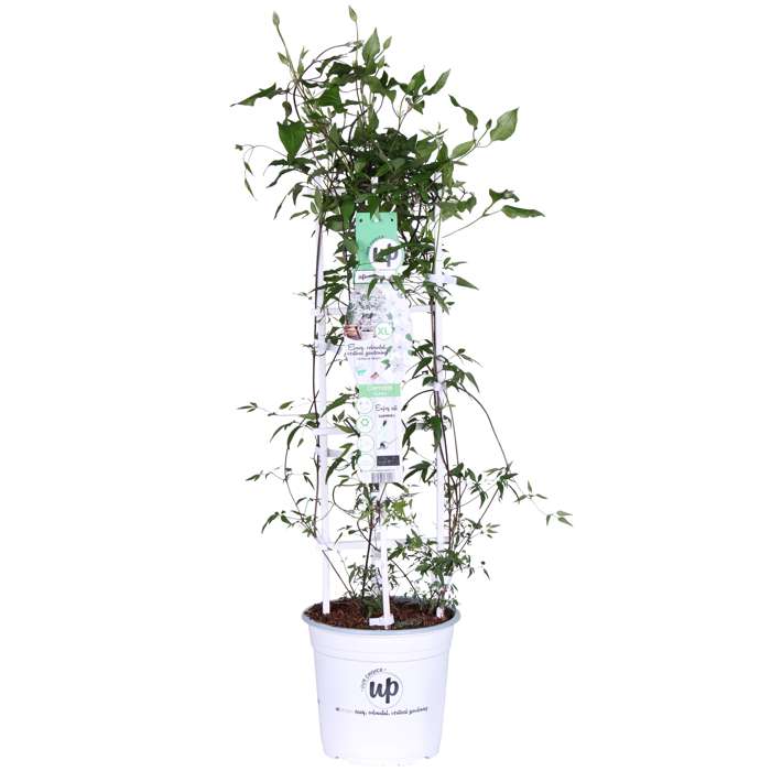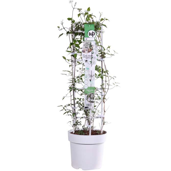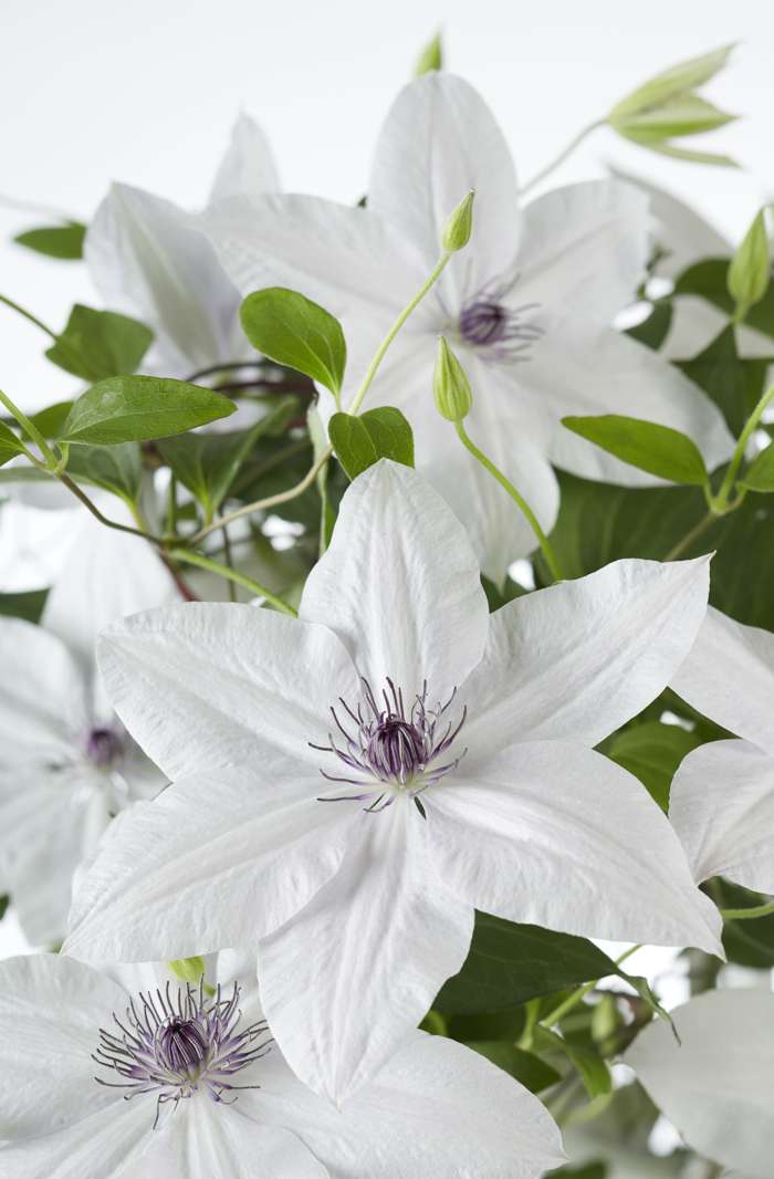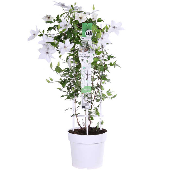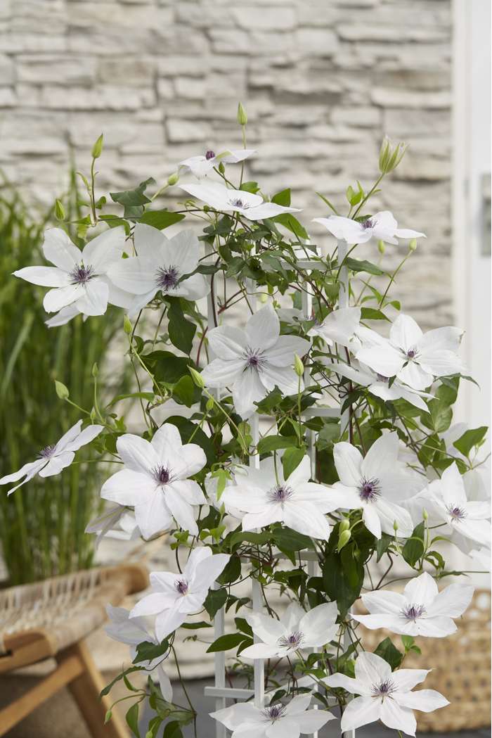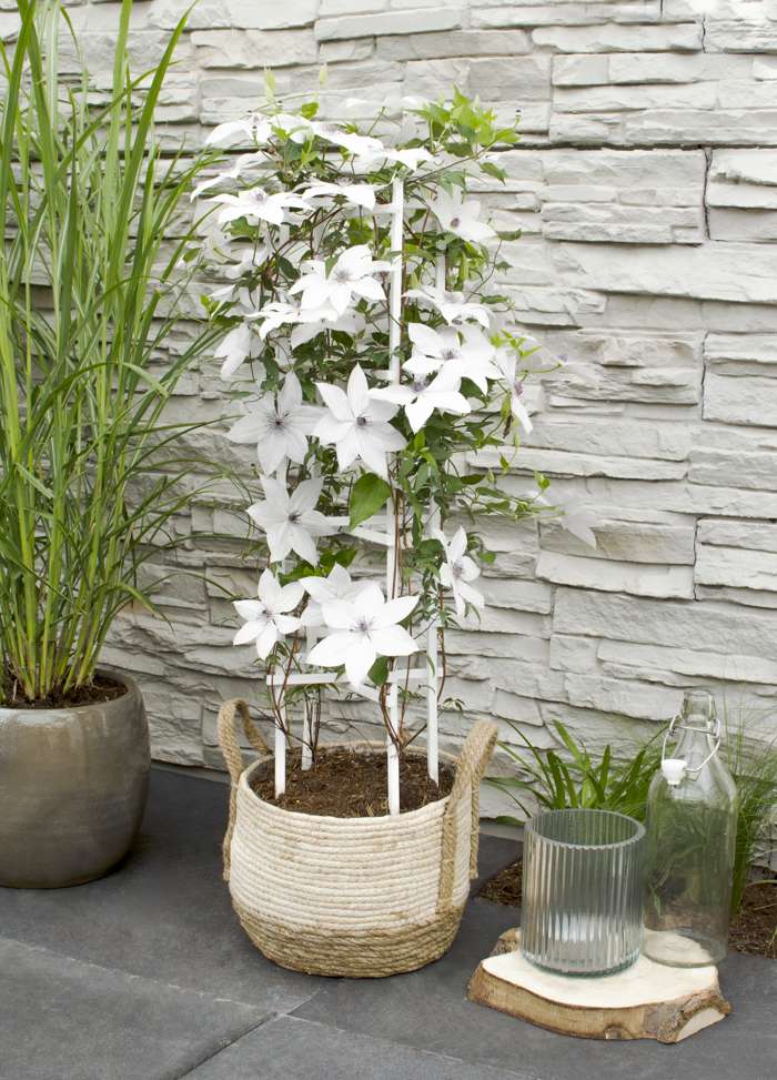 Eine ganz besondere Clematis, die den ganzen Sommer über blüht. Von Mai bis September kann man sich an ihren großen weißen Dolden erfreuen. Die Clematis bildet im ersten Jahr eine Blütenoase. Im Gegensatz zu den meisten Clematis-Arten, die nur ein bis zwei Monate blühen, kann man sich an ‚Tsukiko‘ bis zu fünf Monate lang erfreuen. Auf einer Pergola oder einem Klettergerüst wird ‚Tsukiko‘ maximal 180 cm hoch. Diese Clematis bevorzugt einen Platz in der (halb)vollen Sonne. Idealerweise sollte sie in der Morgen- und/oder Abendsonne liegen. Da ‚Tsukiko‘ eine kompakte Art ist, kann sie auch in einem Topf auf dem Balkon, der Terrasse oder sogar in einer Blütenampel gepflanzt werden. Damit die Clematis besser klettern kann, braucht sie ein wenig Hilfe. Am besten ist es, die Pflanze an einem Gestell, Draht oder Stock entlang zu führen. Ein Rückschnitt ist nicht erforderlich. Entfernen Sie jedoch Anfang März abgestorbene und beschädigte Zweige. Sie können diese Clematis im Frühjahr auf eine Höhe von maximal 20 Zentimetern über dem Boden zurückschneiden.