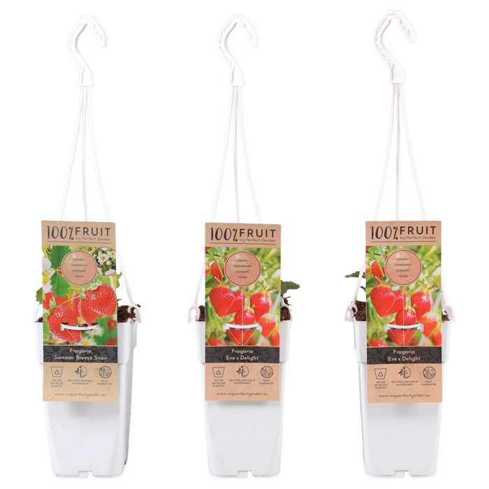 Fragaria Eve’s Delight‘ ist eine pflegeleichte Erdbeerpflanze. Die Pflanze blüht im April und Mai. In dieser Zeit erscheinen niedliche kleine, duftende weiße Blüten an der Pflanze. Die ersten Erdbeeren können im Juli gepflückt werden, die letzte Ernte erfolgt im September. Die Pflanze liefert köstliche, große, süße und gesunde Früchte! Wenn Sie die Pflanze in die Sonne stellen, werden die Früchte besonders süß. Nach der Ernte ist es am besten, die Pflanze bis auf 10 cm über dem Boden zurückzuschneiden, damit Sie in der nächsten Saison wieder Erdbeeren pflücken können. Die ‚Fragaria‘ kann im Freiland, in einem Ziertopf oder in einem Pflanzgefäß auf dem Balkon oder am Zaun gepflanzt werden. Sie ist einigermaßen winterhart, aber in Frostperioden sollte man sie vor Kälte schützen.