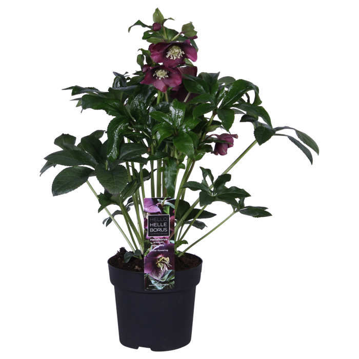 Die Lenzrose (Helleborus orientalis Hello Ruby) bringt im Winter und im zeitigen Frühjahr Farbe in Ihren Garten oder auf Ihre Terrasse. Da die Helleborus eine der wenigen Pflanzen ist, die im Winter und im zeitigen Frühjahr blüht, ist sie auch für die ersten Bienen, die aus dem Winterschlaf erwachen, attraktiv. Die Pflanze ist sowohl im Garten als auch auf der Terrasse sehr einfach zu verwenden. Schneiden Sie die hässlichen Blätter nach dem Winter bis zum Boden zurück, damit die Pflanze im Frühjahr mit neuen Blättern aus dem Boden sprießen kann.