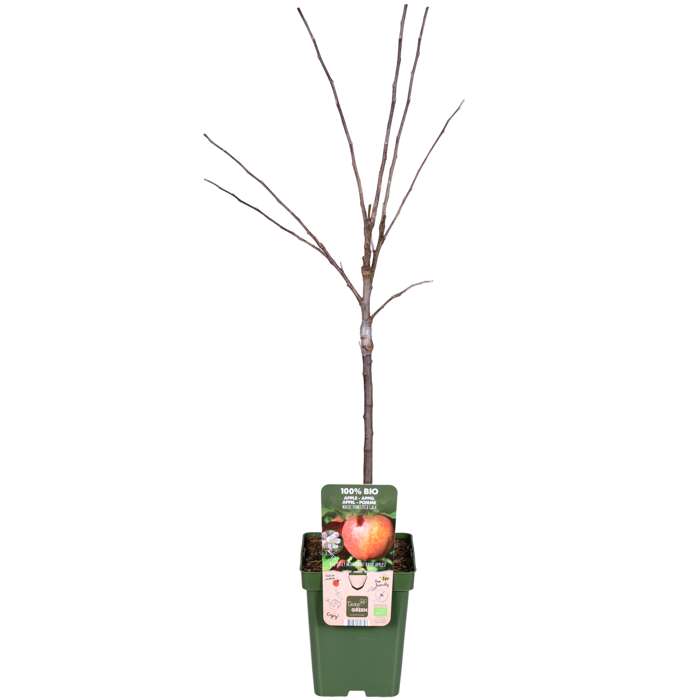 Malus Domestica Gala‘ ist ein Apfelbaum mit saftigen, süßen Früchten. Der geringe Säuregehalt des Apfels macht ihn auch für Kinder schmackhaft. Die Äpfel können von Ende September bis Anfang Oktober gepflückt werden und halten sich recht gut. Der Baum bevorzugt einen sonnigen und geschützten Standort, vorzugsweise in der Nähe einer anderen Apfelsorte zur Bestäubung. In den ersten zwei bis drei Jahren ist es sinnvoll, den Baum mit Pfählen zu stützen. Dadurch wird verhindert, dass der Baum schief geweht wird und die neu gebildeten Wurzeln abreißen. Achten Sie auch darauf, dass genügend Wasser vorhanden ist, vor allem im ersten Jahr. Der richtige Schnitt von Obstbäumen ist eine Spezialität, aber im Allgemeinen sollten 3 bis 5 Hauptäste erhalten bleiben, an denen Seitenzweige mit Blüten und Früchten wachsen können. Die Äste sollten sich möglichst nicht überkreuzen und der Baum sollte etwas offen bleiben. Natürlich wird der Baum in jedem Garten eine andere Wunschgröße haben.