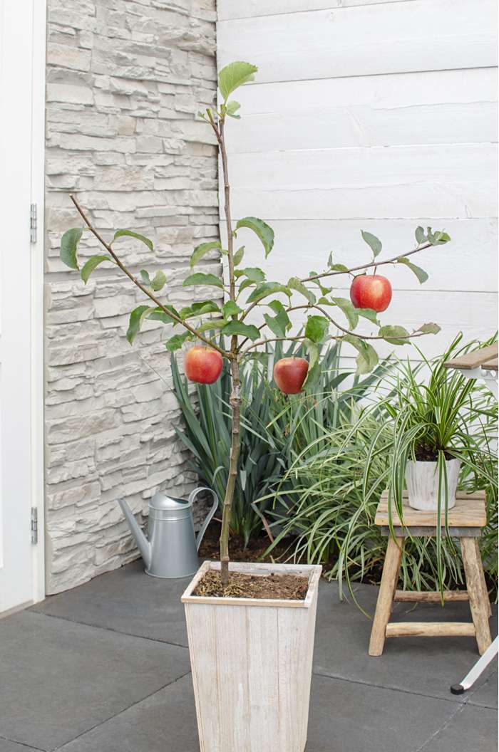 Malus Domestica Jonagold‘ ist eine sehr bekannte Apfelsorte. Lassen Sie dem Baum viel Platz zum Wachsen. Er blüht im April und Mai mit weiß-rosa Blüten, aus denen sich schmackhafte Äpfel entwickeln. Die Frucht ist groß, rot-gelb und hat ein gelb-weißes, saftiges Fruchtfleisch. Der Geschmack ist etwas süß und leicht säuerlich. Äpfel enthalten viele Ballaststoffe, Vitamine und Antioxidantien. Sie ist auch die am häufigsten gegessene Frucht in den Niederlanden. Äpfel können von Ende September bis Anfang Oktober geerntet werden. Sie bevorzugt einen sonnigen, geschützten Standort und vorzugsweise in der Nähe einer anderen Apfelsorte zur Bestäubung. In den ersten zwei bis drei Jahren ist es sinnvoll, den Baum mit Pfählen zu stützen. Dadurch wird verhindert, dass der Baum schief geweht wird und die neu gebildeten Wurzeln abreißen. Achten Sie auf eine ausreichende Wasserversorgung, vor allem im ersten Jahr. Das richtige Beschneiden von Apfelbäumen ist recht schwierig, in der Regel sollten 3 bis 5 Hauptäste erhalten bleiben, an denen Seitenzweige wachsen können.