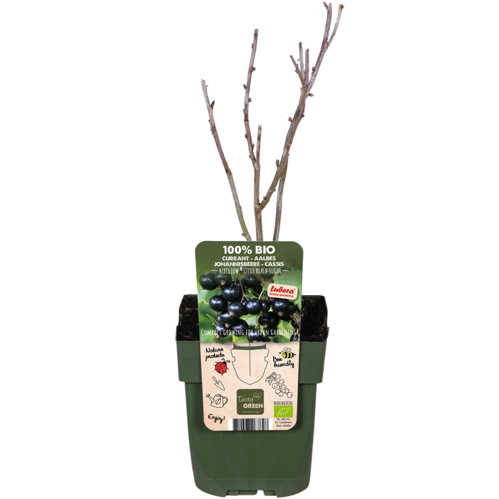 Ribes Lowberry Little Black Sugar‘ ist eine schwarze Johannisbeere. Der schwarze Johannisbeerstrauch bleibt kompakt und wird nur 80 bis 100 cm hoch. Er ist daher auch für einen kleinen Garten oder Balkon geeignet. Gegen Mitte Mai blüht dieser Strauch mit unscheinbaren weiß-rosa Blüten und ist dann für bestäubende Insekten attraktiv. Nach der Blüte entwickelt der Strauch schwarze, glänzende Beeren in großen Büscheln. Für einen optimalen Ertrag und süßere Beeren benötigt der Strauch direktes Sonnenlicht. Die Beeren dieses Strauches können ab Juni gepflückt werden. Die Früchte können frisch verzehrt werden, aber noch schmackhafter ist die Verarbeitung zu Marmelade oder Saft. Die Frucht ist vor allem durch das Getränk Cassis bekannt. Mit ihrem hohen Vitamin-C-Gehalt ist sie eine der gesündesten Beeren. Der Strauch kann zwischen Februar und März beschnitten werden, wobei nur die abgestorbenen Zweige entfernt werden sollten. Je weniger Sie beschneiden, desto größer ist die Chance, dass sich Beeren bilden. Sie ist pflegeleicht und trägt bereits nach einem Jahr Früchte. Der Strauch verliert im Winter seine Blätter, kann aber problemlos Temperaturen bis zu -34 Grad Celsius aushalten.