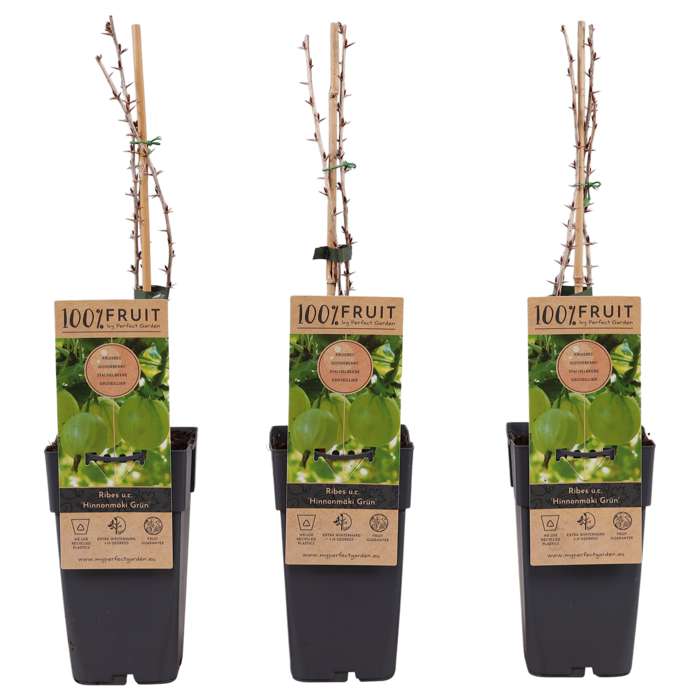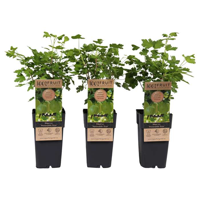 Ribes uva-crispa Hinnonmaeki Grun Grüne Stachelbeeren sind schmackhaft und in drei Farben erhältlich: rot, gelb und grün. Diese Pflanze gibt es als freien Strauch oder zusammengebunden mit drei Zweigen. Die Früchte sind mittelgroß. Der Geschmack ist fein und für alle Zwecke geeignet. Diese Pflanze bevorzugt einen offenen, sonnigen Standort und einen nicht zu feuchten Boden. Ribes uva-crispa Hinnonmaeki Grun ist eine grüne Stachelbeere. Die Früchte sind blassgrün. Die Pflanze ist frostbeständig. Die Sträucher sind buschig und werden etwas breit. Die Früchte sind mittelgroß. Der Geschmack ist fein und für alle Zwecke geeignet. Diese Pflanze bevorzugt einen offenen, sonnigen und nicht zu feuchten Boden. Seien Sie jedoch vorsichtig, denn die Stacheln der Pflanze sind sehr scharf. Ribes uva-crispa ‚Hinnonmaki Grön‘ ist eine grüne Stachelbeere. Die Stachelbeeren sind ab August reif zum Pflücken.
