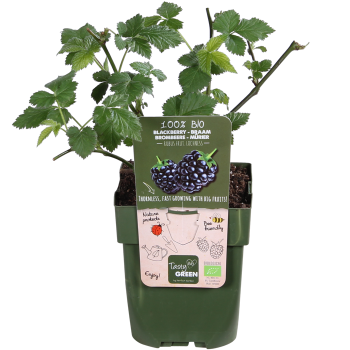 Rubus Fruticosus Loch Ness‘ ist eine dornenlose Brombeere mit mittlerer Wuchskraft und einer hohen Produktion von schmackhaften Brombeeren. Sie trägt früh und lange Früchte, von Anfang August bis Oktober. So können Sie die köstlichen süßen und festen Früchte voller Mineralien länger genießen. Die Tatsache, dass die Sträucher keine Stacheln haben, beeinträchtigt nicht den Geschmack der Früchte, aber sie sind kinderfreundlicher und leichter zu pflücken. Die Pflanzen können Schatten vertragen, tragen aber an einem sonnigen und geschützten Standort mehr Früchte. Dicke Zweige sollten im Frühjahr zurückgeschnitten werden, da sie die besten Früchte tragen. Schneiden Sie alles weg, was zu viel ist. Verwenden Sie eine Mauer oder einen Zaun, um die Zweige mit Drähten zu führen. Die Drähte können auch zwischen zwei Pfosten gespannt werden. Brombeeren tragen Früchte an Stielen, die im Vorjahr gebildet wurden. Schneiden Sie regelmäßig, sowohl im Frühjahr als auch im Herbst. Schneiden Sie nach der Ernte die Zweige, die Früchte getragen haben, vollständig ab. Regelmäßiges Beschneiden verhindert auch die Ausbreitung von Krankheiten. Rubus fruticosus Loch Ness‘ verträgt leichten Frost, aber wir raten Ihnen, die Pflanze zu schützen, wenn sie bei mehr als 10 °C gefriert. Dies kann zu Schäden oder sogar zum Absterben der Pflanze führen. Dies kann Schäden verursachen oder sogar zum Absterben des Strauches führen.