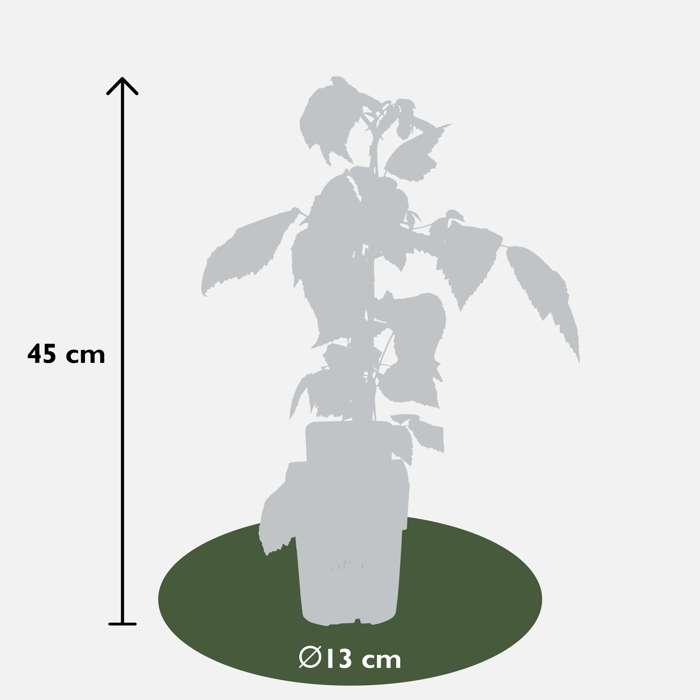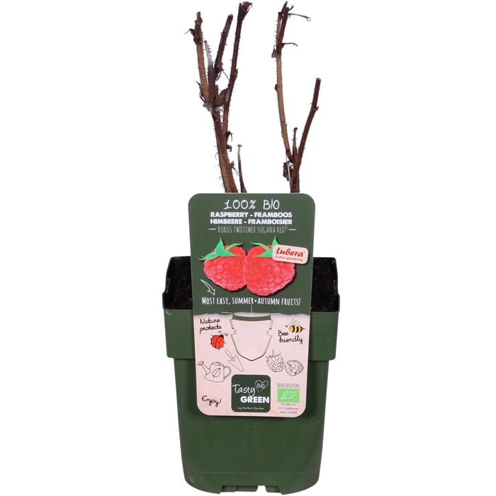 Rubus Idaeus Twotimer Sugana Red‘ ist die einzige Himbeere, die zweimal im Jahr Früchte trägt. Eine echte Bereicherung für Ihren Garten! Die Himbeeren sind köstlich süß und leuchtend rot. Sie sind sehr gesund und enthalten viele Antioxidantien, Mineralien und Vitamine. Der Strauch wächst aufrecht und kann eine Höhe von etwa 180 cm erreichen. Diese Sorte eignet sich für kleinere Gärten, sogar für den Balkon. Im Juni erfolgt die erste Ernte an den alten Zweigen des Strauches, im Herbst die zweite Ernte an den neuen Zweigen. Die Himbeere ist leicht zu pflegen und kann in allen Klimazonen überleben. Im ersten Jahr brauchen Sie den Strauch nicht zu beschneiden. Danach können Sie die Zweige im zeitigen Frühjahr zurückschneiden. Die Pflanze hat ein stabiles Wachstum und eine gute Resistenz gegen Krankheiten. Auch Vögel lieben Himbeeren, also schützen Sie den Strauch z. B. mit einem Netz.