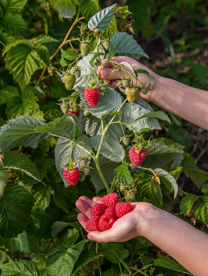 Trägt zweimal pro Jahr Früchte. Sommer- und Herbsthimbeere