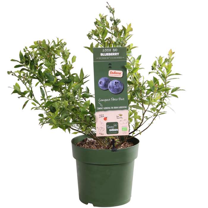 Vaccinium Little Blue Wonder‘ ist auch als Heidelbeere oder amerikanische Blaubeere bekannt. Die ‚Little Blue Wonder‘ ist eine der kompaktesten Heidelbeeren, die Pflanze wird nur etwa 50 cm hoch. Die Beeren sind recht klein, haben aber einen angenehm frischen Geschmack und eine schöne himmelblaue Farbe. Man kann sie direkt vom Strauch essen, aber sie eignen sich auch sehr gut für die Verwendung in Marmelade, Kuchen oder Saft. Die Pflanze bevorzugt einen sonnigen bis halbschattigen Standort und benötigt zum Wachsen einen sauren Boden. Andernfalls wird die Pflanze kaum Früchte tragen oder sogar absterben. Die Heidelbeere blüht im Mai mit weiß-rosa Blüten, aus denen sich Beeren entwickeln. Der Beginn der Erntezeit ist im Juli. Im Herbst verfärben sich die Blätter in ein schönes Rot, danach verliert sie ihre Blätter. Die blauen Beeren enthalten Anthocyane, eine Substanz, die der Beere ihre blaue Farbe verleiht. Dieser Stoff hat eine gute Wirkung auf das Herz und die Blutgefäße. Der Farbstoff kann u. a. dafür sorgen, dass Fettansammlungen in den Blutgefäßen reduziert werden, was die Durchblutung verbessert. Darüber hinaus enthalten Heidelbeeren Antioxidantien. Diese spielen eine wichtige Rolle im Alterungsprozess. Kurzum, eine supergesunde Beere, die jeder in seinem Garten haben möchte!