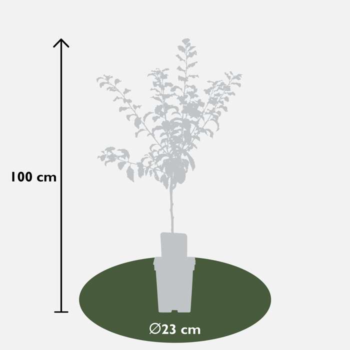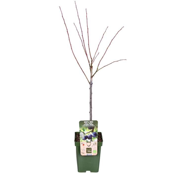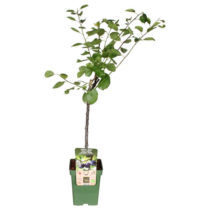‘Prunus Domestica Hauszwetsche’ is a plum tree that flowers from mid-April with white-pink flowers. It is an old variety that can pollinate itself. If other fruit trees pollinate the tree, you often get more and better fruit. The dark blue juicy sweet plums can be picked from September onwards and are mainly used as hand plums, but are also suitable for hot dishes. The plum is not only tasty, but also extremely healthy. They contain many antioxidants and are very rich in fibre, thus promoting a healthy bowel movement. The plum tree can be pruned at two times: in the spring after flowering or in the autumn after harvest. Always prune on a relatively warm and dry day to prevent diseases and leave enough older branches for good fruit in the new season. In the end, create an open tree with a number of main branches, from which the side branches emerge. All fruit, including plums, ripens best in the sun. So give this fruit tree a sunny spot in the garden.