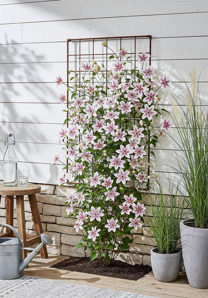 A very special Clematis that flowers throughout the summer. From May to September you can enjoy its large red umbels. The Clematis provides an oasis of flowers in its first year. Unlike most Clematis species that flower for one to two months, ‘Ithemba’ can be enjoyed for up to five months. On a pergola or climbing frame, the Clematis ‘Ithemba’ will grow to a maximum height of 180 cm. This clematis prefers a spot in the (semi-) full sun. A spot in the morning and/or evening sun is most ideal. Because ‘Ithemba’ is a compact variety, it can also be placed in a pot on a balcony, terrace or even in a hanging basket. In order for the Clematis to climb better, it needs a little help. The best way is to guide the plant along a rack, wire or stick. Pruning is not necessary. However, remove dead and damaged twigs in early March. You can prune this Clematis in the spring to a maximum height of 20 centimetres above the ground.