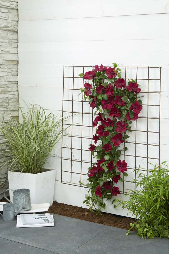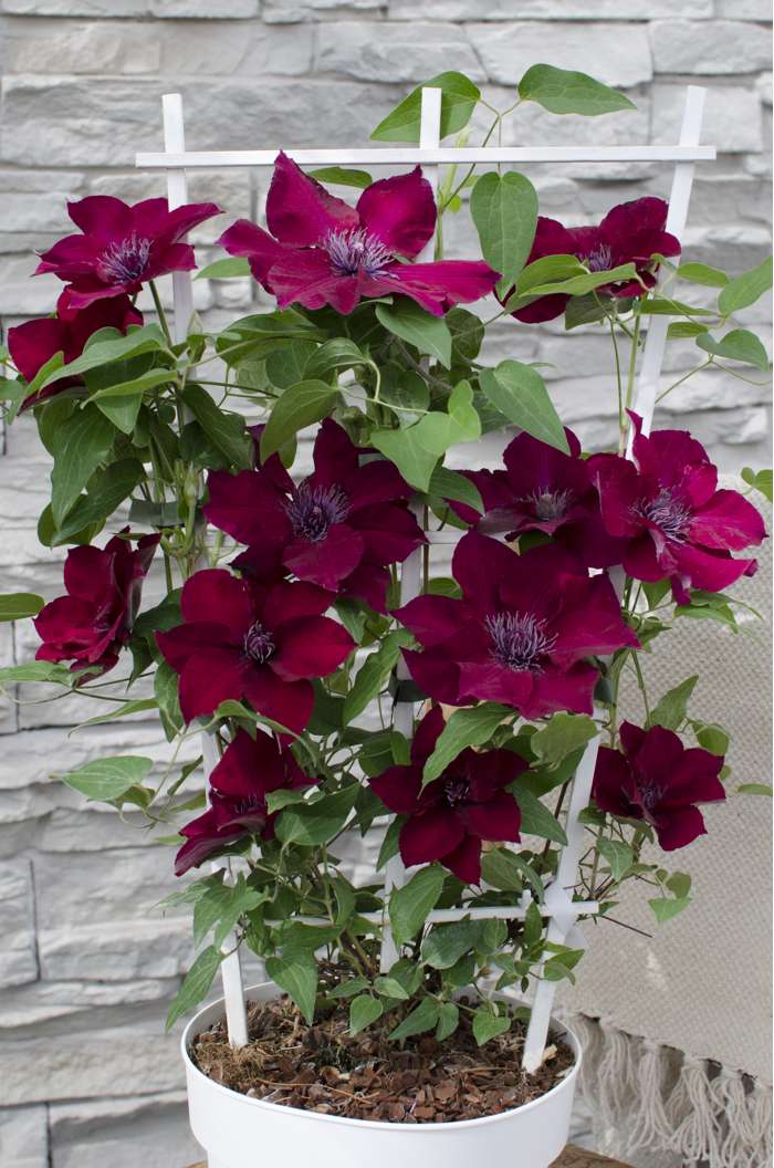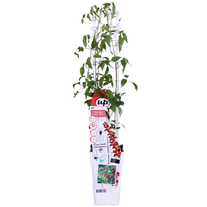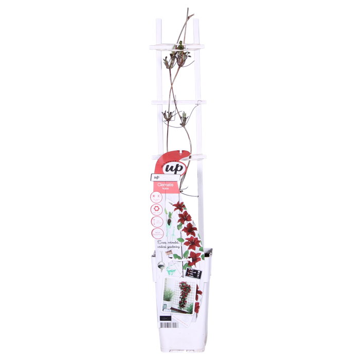 A very special Clematis that flowers throughout the summer. From May to September you can enjoy its large red umbels. The Clematis provides an oasis of flowers in its first year. Unlike most Clematis species that flower for one to two months, ‘Nubia’ can be enjoyed for up to five months. On a pergola or climbing frame, the Clematis ‘Nubia’ will grow to a maximum height of 180 cm. This clematis prefers a spot in the (semi-) full sun. A spot in the morning and/or evening sun is most ideal. Because ‘Nubia’ is a compact variety, it can also be placed in a pot on a balcony, terrace or even in a hanging basket. In order for the Clematis to climb better, it needs a little help. The best way is to guide the plant along a rack, wire or stick. Pruning is not necessary. However, remove dead and damaged twigs in early March. You can prune this Clematis in the spring to a maximum height of 20 centimetres above the ground.
