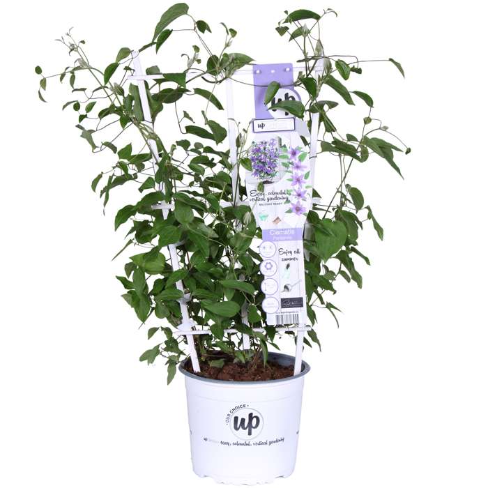 A very special Clematis that flowers throughout the summer. From May to September you can enjoy its large dark blue striped umbels. The Clematis provides an oasis of flowers in its first year. Unlike most Clematis species that flower for one to two months, ‘Parisienne Boulevard’ can be enjoyed for up to five months. On a pergola or climbing frame, ‘Parisienne Boulevard’ will reach a maximum height of 180 cm. This Clematis prefers a spot in the (semi-) full sun. A spot in the morning and/or evening sun is most ideal. Because ‘Parisienne Boulevard’ is a compact variety, it can also be placed in a pot on a balcony, terrace or even in a hanging basket. In order for the Clematis to climb better, it needs a little help. The best way is to guide the plant along a rack, wire or stick. Pruning is not necessary. However, remove dead and damaged twigs in early March. You can prune this Clematis in the spring to a maximum height of 20 centimetres above the ground.
