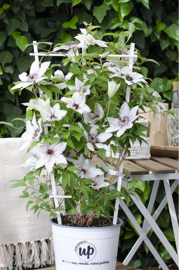 A very special Clematis that flowers throughout the summer. From May to September you can enjoy its large white-pink striped umbels. The Clematis provides an oasis of flowers in its first year. Unlike most Clematis species that flower for one to two months, ‘Countess of Wessex’ can be enjoyed for up to five months. On a pergola or climbing frame, ‘Countess of Wessex’ will grow to a maximum height of 180 cm. This clematis prefers a spot in the (semi-) full sun. A spot in the morning and/or evening sun is most ideal. Because ‘Countess of Wessex’ is a compact variety, it can also be placed in a pot on a balcony, terrace or even in a hanging basket. In order for the Clematis to climb better, it needs a little help. The best way is to guide the plant along a rack, wire or stick. Pruning is not necessary. However, remove dead and damaged twigs in early March. You can prune this Clematis in the spring to a maximum height of 20 centimetres above the ground.