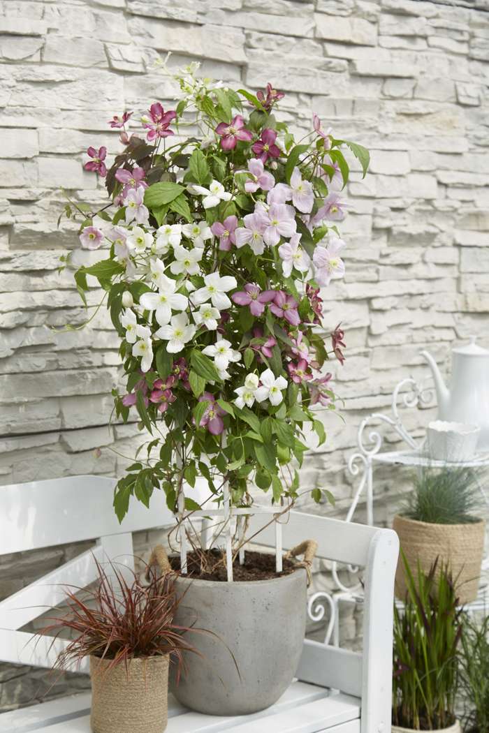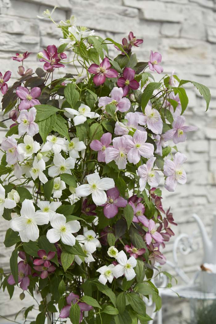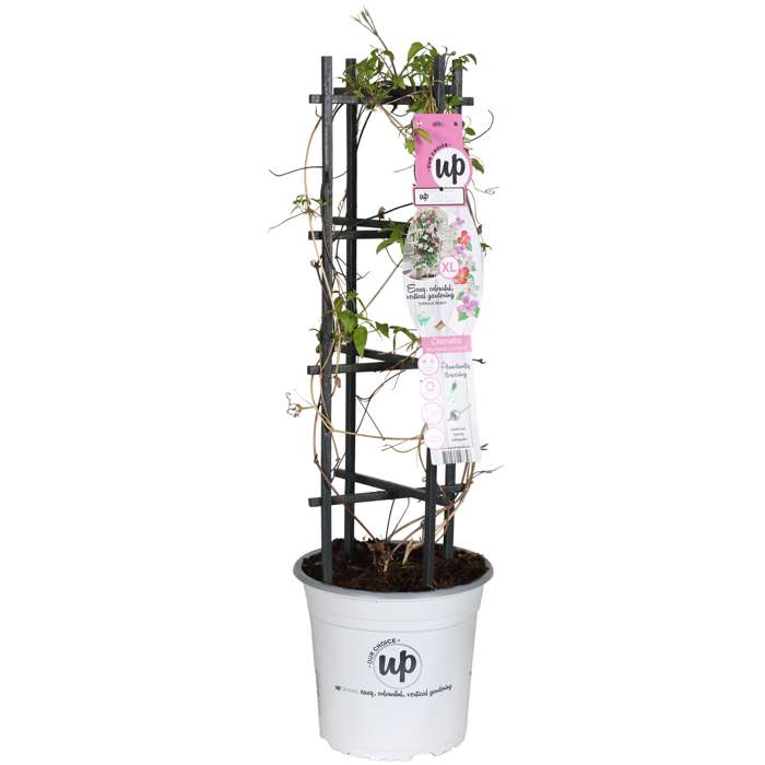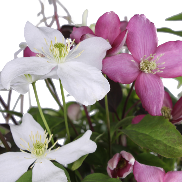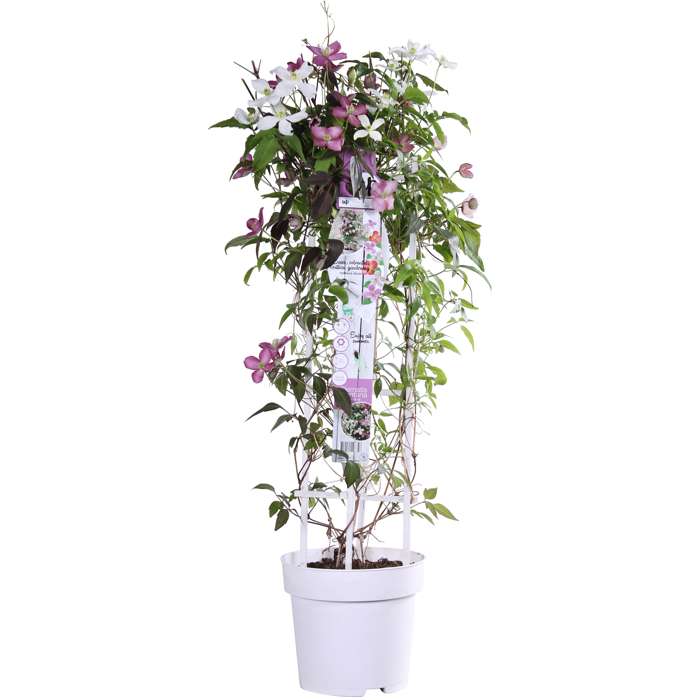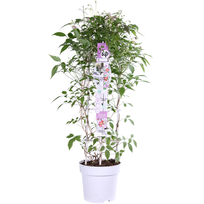 The Clematis ‘Montana’ is one of our favourites. It is a strong climber that grows quickly and flowers very abundantly with numerous cheerful flowers. The ‘Montana’ varieties grow faster than the Large flowers Clematis varieties. The Clematis ‘Montana’ varieties from the ‘Our Choice’ series are characterised by longer and richer flowering and are more resistant to disease than the regular ‘Montana’ varieties. They remain much more compact and grow to a height of 2 to 3 metres. The Clematis can be placed in a large pot or flower box, but can also grow against a climbing frame. They bloom in May/July with intensely coloured small flowers that change colour as they get older. Place this Clematis in the full sun or semi shade. If the Clematis is in full sunlight, it is important that the roots stay out of the sun. Cover the root ball well and plant it 10 to 15 cm deep. After the flowering period, the plant can be pruned back to 50 cm. Pruning keeps the plant young and in shape, but pruning is not necessary.
