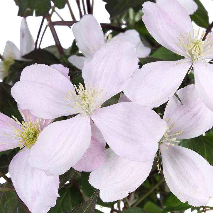 The Clematis ‘Montana’ is one of our favourites. It is a strong climber that grows quickly and flowers very abundantly with numerous cheerful flowers. The ‘Montana’ varieties grow faster than the Large flowers Clematis varieties. The Clematis ‘Montana’ varieties from the ‘Our Choice’ series are characterised by longer and richer flowering and are more resistant to disease than the regular ‘Montana’ varieties. They remain much more compact and grow to a height of 2 to 3 metres. The Clematis can be placed in a large pot or flower box, but can also grow against a climbing frame. They bloom in May/July with intensely coloured small flowers that change colour as they get older. Place this Clematis in the full sun or semi shade. If the Clematis is in full sunlight, it is important that the roots stay out of the sun. Cover the root ball well and plant it 10 to 15 cm deep. After the flowering period, the plant can be pruned back to 50 cm. Pruning keeps the plant young and in shape, but pruning is not necessary.