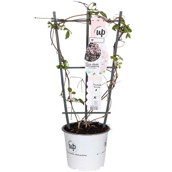 The Clematis ‘Montana’ is one of our favourites. It is a strong climber that grows quickly and flowers very abundantly with numerous cheerful flowers. The ‘Montana’ varieties grow faster than the Large flowers Clematis varieties. The Clematis ‘Montana’ varieties from the ‘Our Choice’ series are characterised by longer and richer flowering and are more resistant to disease than the regular ‘Montana’ varieties. They remain much more compact and grow to a height of 2 to 3 metres. The Clematis can be placed in a large pot or flower box, but can also grow against a climbing frame. They bloom in May/July with intensely coloured small flowers that change colour as they get older. Place this Clematis in the full sun or semi shade. If the Clematis is in full sunlight, it is important that the roots stay out of the sun. Cover the root ball well and plant it 10 to 15 cm deep. After the flowering period, the plant can be pruned back to 50 cm. Pruning keeps the plant young and in shape, but pruning is not necessary.