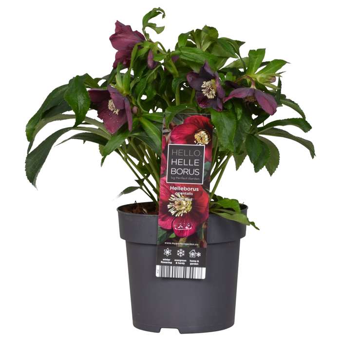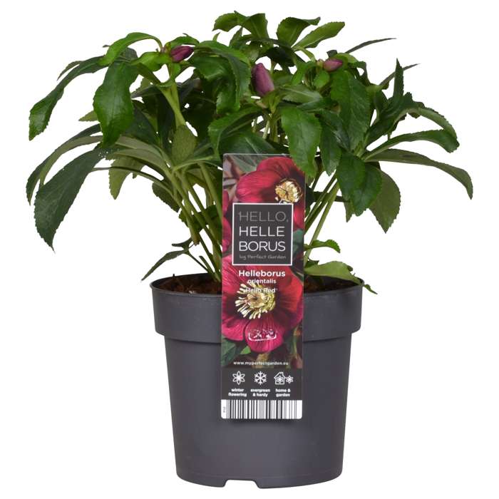 The Spring Rose (Helleborus orientalis Hello Red) brings colour to your garden or terrace in winter and early spring. Because the Helleborus is one of the few plants that blooms in winter and early spring, it is also attractive to the first bees that wake up from hibernation. The plant is very easy to use both in the garden and on the terrace. Prune the ugly leaves to the ground after the winter and the plant will sprout again in spring with new leaves from the ground.