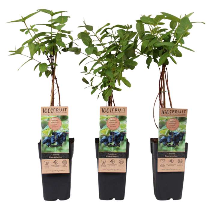 Lonicera Kamtschatica’ is a blue honeysuckle berry that tastes similar to the blueberry. It originates in North-East Asia and Siberia and is still relatively unknown in the Netherlands. The shrub is very winter hardy and flowers already in March with inconspicuous green-yellow flowers. The honeyberry bush is self-pollinating, but when several plants are planted together it gives a better harvest. Bumblebees take care of pollination and the fruits can already be harvested at the end of May or the beginning of June. The berries are dark blue in colour and have a special oblong shape. As the name Honeybee already says, the taste is deliciously sweet and they contain many vitamins. They contain a lot of pectin, vitamin B and C. The berries are suitable to use in a dish or to eat freshly picked. It grows to a maximum height of 150 cm, so pruning is hardly necessary. The ‘Lonicera Kamtschatica’ likes a place in the sun to semi shade in a permeable but slightly moist soil.