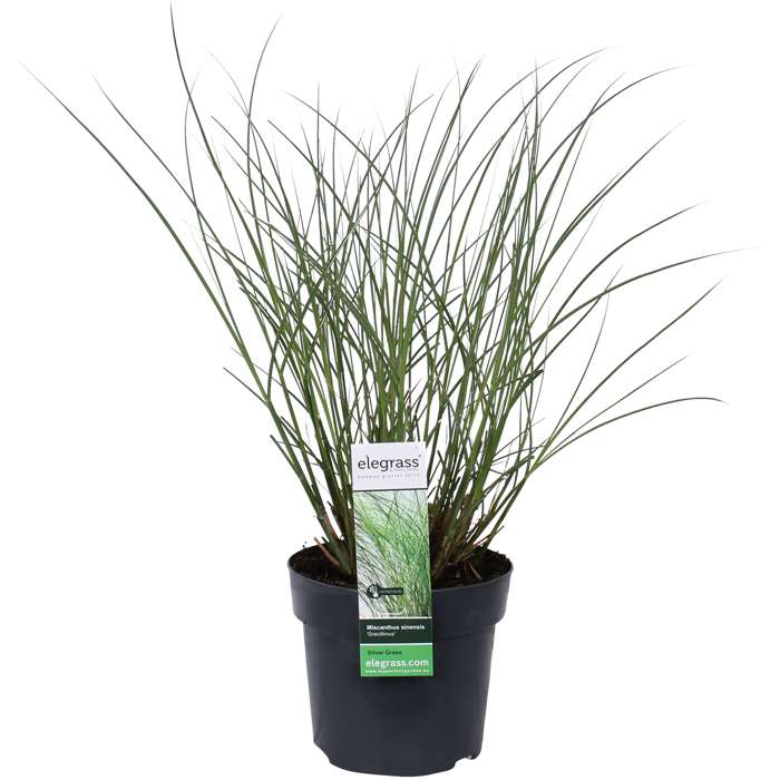 Miscanthus sinensis “Gracillimus” is one of the most widely cultivated species of Miscanthus. This Deciduous reed has a bushy, upright form with very narrow linear mid-green leaves with a white centre stripe, which turn straw-coloured in autumn. Miscanthus sinensis “Gracillimus” flowers (sporadically) from August to October with copper-coloured flower spikes, which turn silver-white later in the season when the seed ripens. This beautiful reed prefers a sunny spot and a well-drained, slightly moist, moderately fertile soil. Miscanthus sinensis “Gracillimus” is Hardy and once established also drought tolerant. He tolerates air pollution and sea wind.