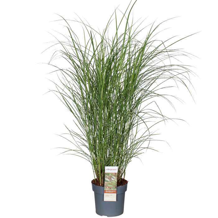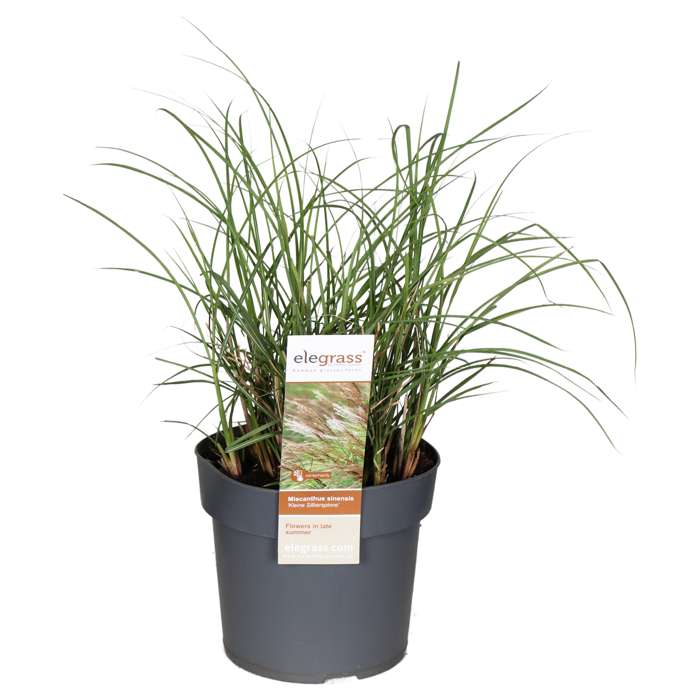 Miscanthus Sinensis Kleine Silberspinne’, also known as ‘Silvergrass’, is an ornamental grass with an upright growth. The ‘Kleine Silberspinne’ will not grow very tall, it can reach 175 cm. The narrow leaf is green with an unusual silvery-white vein, changing to orange-brown in the autumn. This beautiful reed flowers in August and September with light red plumes that rise above the plant. The plumes change from light red to golden yellow in the autumn and remain on the plant into the winter. This ornamental grass is Hardy, but loses its leaves to regrow in the spring. Miscanthus Sinensis ‘Kleine Silberspinne’ is one of the lowest growing species and therefore suitable for all types of gardens. Standing alone Miscanthus sinensis is usually the most beautiful. Especially on the edge of a pond or lawn. It is a strong plant and prefers a moist, well-drained soil in full sun or semi shade.