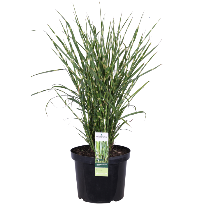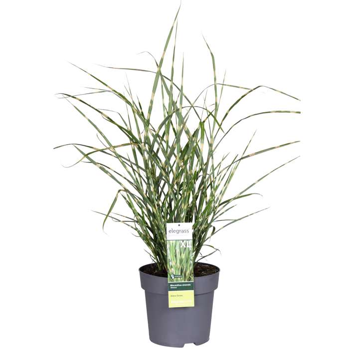 Miscanthus Sinensis Strictus’ is a decorative grass with upright growth and striking playful green-yellow cross-striped leaves. Because of the stripes its nickname is also zebra grass. This ornamental grass flowers with bronze-coloured plumes in late summer. It is a strong grower, which is suitable for both full soil and in a decorative pot. The Miscanthus Sinensis ‘Strictus’ is Hardy, but does lose its leaves. In March you can cut back the plant to 10 cm above the ground, after which it will sprout again. You can place this grass in full sun to semi shade. It grows best in humus-rich soil, but has few demands.