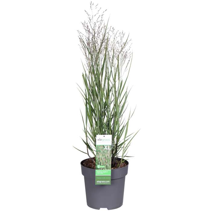 ‘Panicum Virgatum Heavy Metal’ is a compact grass with striking leaves, which are narrow and arching and are a blue-grey colour. This colour distinguishes it most from the other grasses of its species. In autumn, the leaves turn a reddish-brown colour. From June to September, ‘Heavy Metal’ flowers with white to light pink panicles. The ornamental grass reaches a height of 125 to 150 cm, but it will take several years to reach this height. It looks good alone in a pot or in small groups, then it stands out a bit more. It is best to prune the plant back to 10 cm above the ground after the winter. Heavy Metal’ grows best in the full sun in soil that is not too wet.