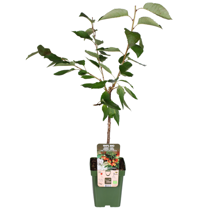 ‘Prunus Avium Bigarreau Napoléon’ is a blond cherry tree. The tree blossoms in the spring with beautiful snow-white flowers. After pollination the tree produces yellow fruits with a red blush and white-yellow firm flesh. They have a juicy and sweet taste. From mid-July onwards the cherries can be picked and eaten. A cherry tree in the garden is also ideal if you are bothered by wasps. The wasps can find everything they need near the tree and so they will not come onto your terrace. Besides the deliciously sweet fruit, cherry trees also have other ornamental value. In the autumn, the leaves turn a beautiful orange-red colour. Cherries are healthy! They contain a lot of carbohydrates, calcium and vitamin C. They are usually eaten out of hand. You can also use them as jam, juice or as garnish for ice cream, cakes and desserts. The cherry tree can be pruned at two times of the year, after flowering and after harvest. After the harvest is the best time, because then the tree can recover well from the pruning wounds. Prune the tree in such a way that an open crown is created with enough old branches that the light can penetrate.