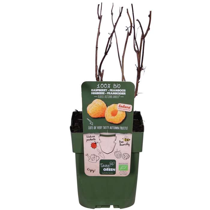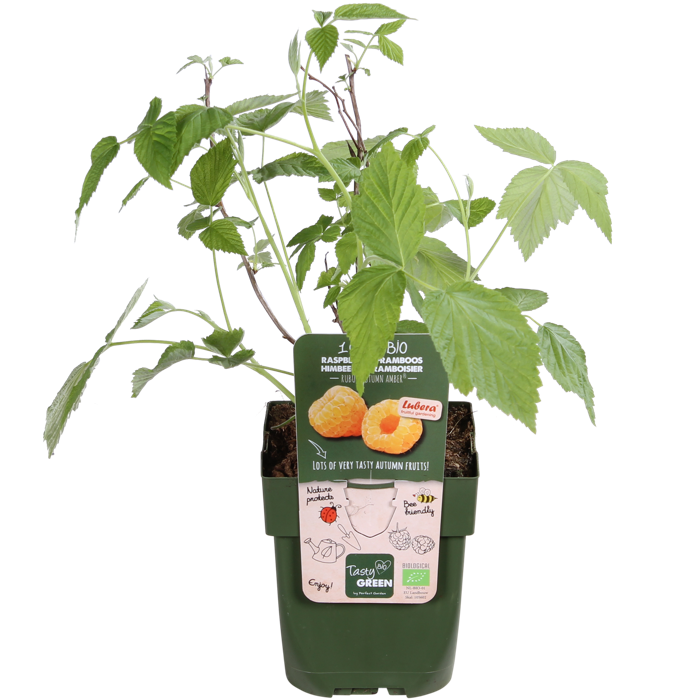 ‘Rubus Autumn Amber’ is a special autumn raspberry, as the fruits are yellow in colour. They taste slightly softer and sweeter than the familiar pink raspberries. In June the shrub flowers with inconspicuous, small white-pink flowers. The flowers are pollinated by bees and bumblebees, so you only need one plant to get fruit. In the course of the summer until October, the yellow raspberries can be harvested. They are especially tasty when eaten straight from the bush, as this soft fruit does not keep as long. The fruit is very healthy, being full of antioxidants, minerals and vitamins. After the harvest, it is wise to remove the branches that have borne fruit so that new young branches can grow in the new year.