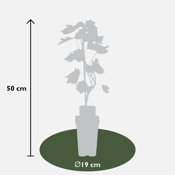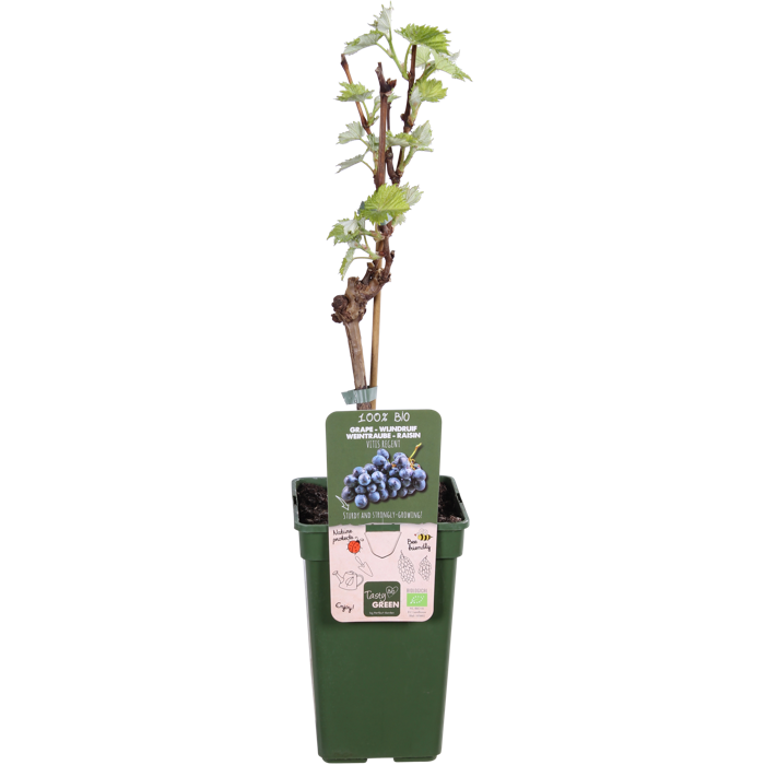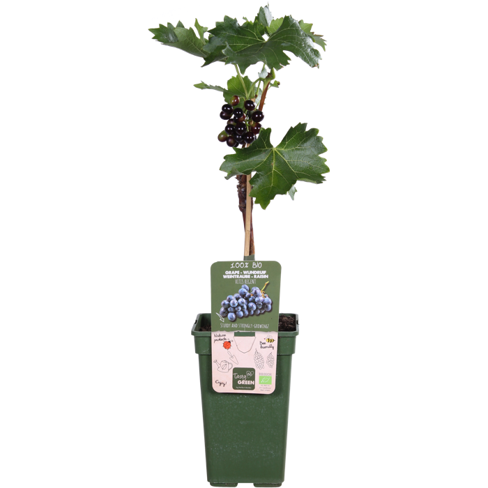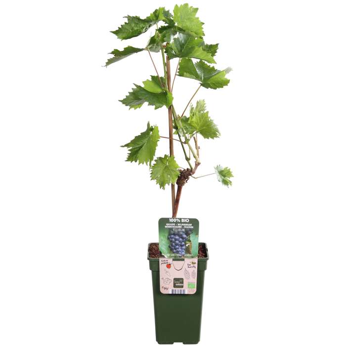 ‘Vitis Regent’ is a sweet, blue grape variety that is suitable for both consumption and wine making. Its good resistance to diseases like mildew make it very suitable for growing in your own garden. The ‘Vitis Regent’ has its origins in Germany. It is an early maturing variety and therefore also very suitable for colder climates. It is a climbing plant that can grow several metres high. You can lead it into all sorts of shapes and keep it very compact by pruning it well. You can easily lead the grape along a pergola or on a wall with tension wires. The grape first produces inconspicuous clusters of flowers in May-June, after which the grape bunches will form. The fruits are blue, with a sweet aromatic taste. You can eat them directly or use them to make jam, juice or wine. The grape plant needs plenty of sun to ripen and loves heat so a south-facing location is ideal. The grapes can be harvested from mid-September onwards. The soil should be well-drained and nutritious and preferably not too acidic, but rather calcareous. Pruning increases the fruit yield and the plant also looks neater. It is best to prune the plant in the period between November and February, but not during severe frost. Prune superfluous side and main branches. This grape variety is Hardy and can withstand temperatures up to -20 degrees.