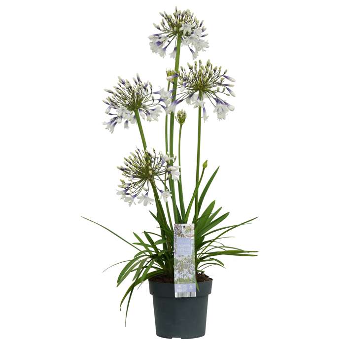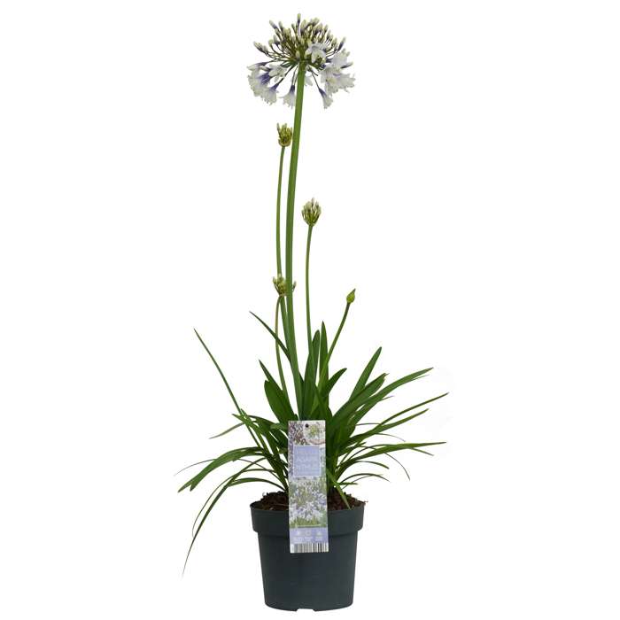 Agapanthus Fireworks is de eerste herbloeiende, groenblijvende, tweekleurige Agapanthus ter wereld! De plant is winterhard tot -10 ºC gebleken, wat meer winterhard is dan andere groenblijvende en tweekleurige Agapanthus soorten. Hij heeft een kort, breed groen blad die een groot contrast vormt met de bloemen. Deze grote paars-witte schermbloemen hebben meerdere trompetvormige bloemen die hoog op een steel staan. De bloemen van de Agapanthus bevatten een hoop nectar en worden daarom vaak bezocht door vlinders, bijen en zelfs vogels. De Agapanthus heeft een lange bloeiperiode van juni tot september. De plant hoeft niet gesnoeid te worden, alleen bladeren die geel geworden zijn kan je afknippen. Na de bloei kan je de overgebleven bloemstengels eventueel verwijderen. De plant is goed winterhard tot wel -10 graden en kan dus makkelijk de winter in Nederland overleven. Deze zonneaanbidder is droogte en hitte resistent en daarom makkelijk in onderhoud.