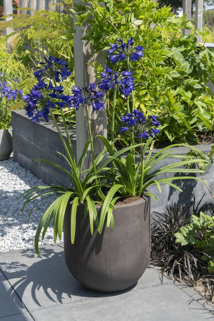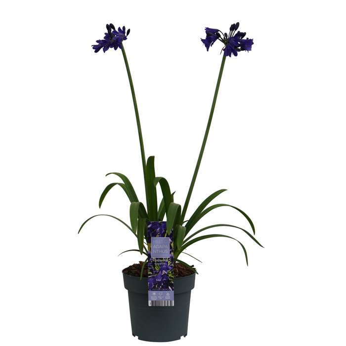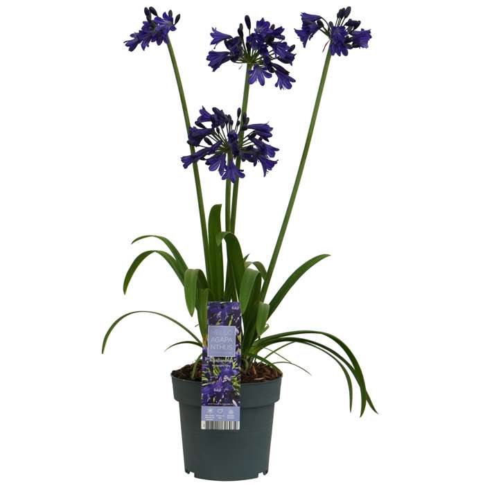 ‘Agapanthus Midnight sky’ is een Afrikaanse lelie die continu in bloei lijkt te staan. Deze plant staat bekend om de goede herbloei en extra lange bloeiperiode. De Agapanthus Midnight Sky groeit sneller dan de standaard Agapanthus en produceert meer bloemkoppen. De bloemen van de plant vallen direct op door hun intens gekleurde, donker paarsblauwe kleur. Je kan minimaal 3 maanden genieten van deze bloemen. Het is een ideale Agapanthus voor in een pot op het terras, maar hij kan ook zeker in een mooie border of gemengde container. Deze Agapanthus geeft jouw tuin een geweldige Mediterrane sfeer. De plant wordt zo’n 80 cm hoog en 70 cm breed. Hij is hitte- en droogte tolerant en erg ziekte bestendig. Zet de Agapanthus in de (volle) zon in een goed doorlatende grond. Hij is winterhard tot ongeveer -12 graden.