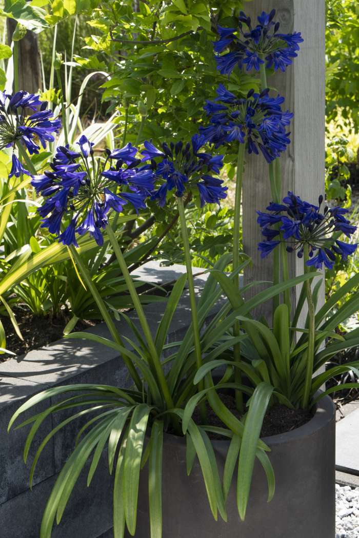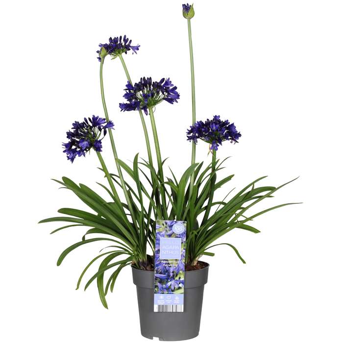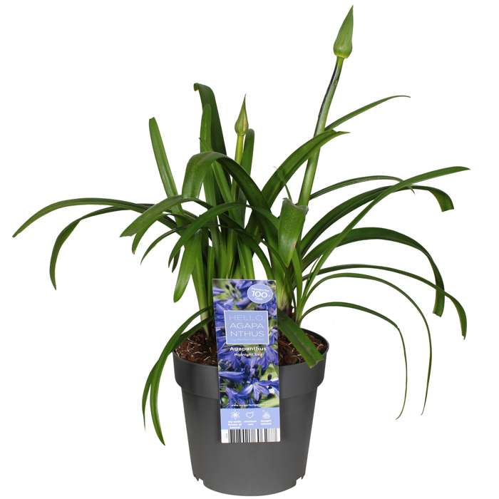 ‘Agapanthus Midnight sky’ is een Afrikaanse lelie die continu in bloei lijkt te staan. Deze plant staat bekend om de goede herbloei en extra lange bloeiperiode. De Agapanthus Midnight Sky groeit sneller dan de standaard Agapanthus en produceert meer bloemkoppen. De bloemen van de plant vallen direct op door hun intens gekleurde, donker paarsblauwe kleur. Je kan minimaal 3 maanden genieten van deze bloemen. Het is een ideale Agapanthus voor in een pot op het terras, maar hij kan ook zeker in een mooie border of gemengde container. Deze Agapanthus geeft jouw tuin een geweldige Mediterrane sfeer. De plant wordt zo’n 80 cm hoog en 70 cm breed. Hij is hitte- en droogte tolerant en erg ziekte bestendig. Zet de Agapanthus in de (volle) zon in een goed doorlatende grond. Hij is winterhard tot ongeveer -12 graden.