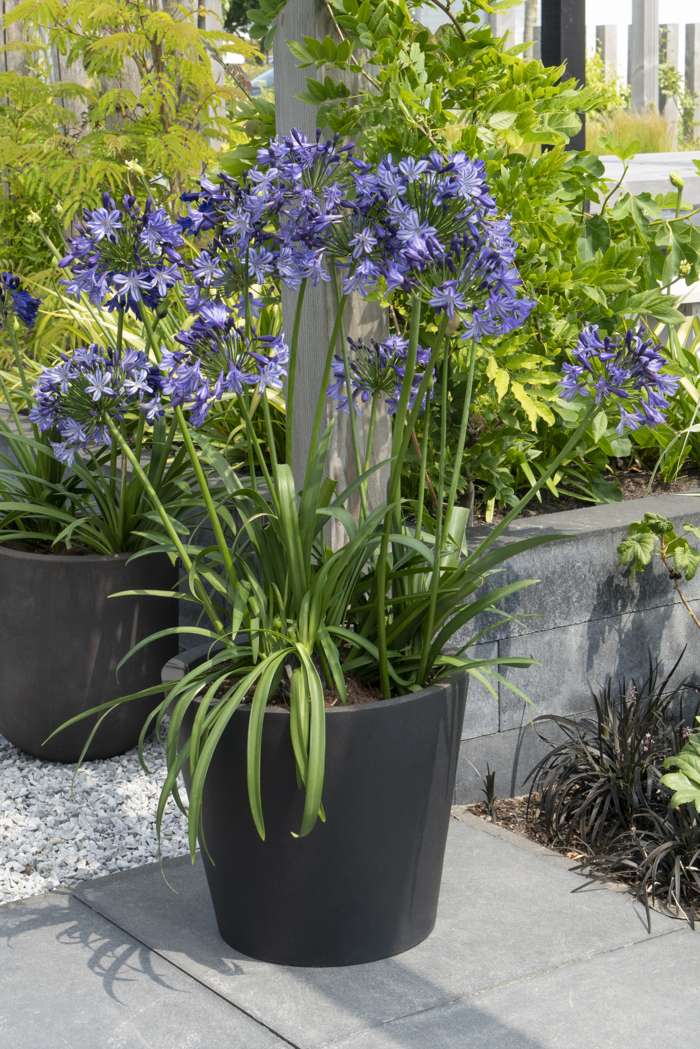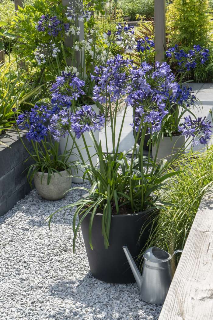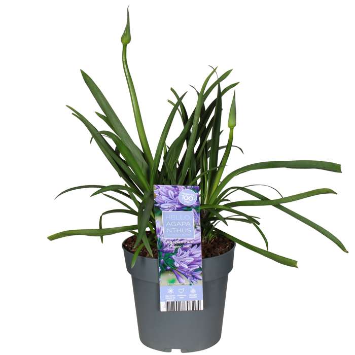 Agapanthus Poppin Star’ is een spectaculaire Agapanthus staat bekend om haar langdurige en herhaalde bloei en een extra lange bloeiperiode. De Agapanthus Poppin’ Star heeft volle bloemhoofden en een overvloed aan gestreepte violetblauw bloemen. De Agapanthus is ook groenblijvend. De bloemen van de Agapanthus bevatten een hoop nectar en worden daarom vaak bezocht door vlinders, bijen en zelfs vogels. Poppin’ Star wordt uiteindelijk zo’n 60 cm hoog en 70 cm breed wat haar de perfecte keuze maakt voor de vaste plantenborder, potten op het terras of gemengde bloembakken. Plant de Agapantus Poppin’ Star in de volle zon en goed doorlatende grond. De plant hoeft niet gesnoeid te worden, alleen bladeren die geel geworden zijn kan je afknippen. Na de bloei kan je de overgebleven bloemstengels eventueel verwijderen. De plant is goed winterhard tot wel -12 graden en kan dus makkelijk de winter in Nederland overleven.