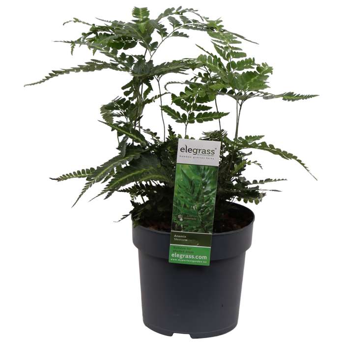 ‘Anemia Mexicana’ is een kleine tot middelgrote varen die ook groeit op rotsen in een vochtige tot droge grond. De plant is aantrekkelijk vanwege het feit dat hij lang gesteelde takvormige fertiele bladeren heeft. Echter zodra de fertiele bladeren ontstaan, lijkt het net of deze plant gaat bloeien. Daar heeft hij ook zijn bijnaam de ‘flowering fern’ aan te danken. Varens zijn onmisbaar in schaduwrijke tuinen. Waar veel andere planten niet willen groeien, voelen zij zich het beste thuis. Bij de varen hoef je enkel de lelijke en afgestorven bladeren te verwijderen na de winter. Hij is winterhard op een enigszins beschutte plek. De varen is makkelijk in onderhoud en geeft jouw border een grote sierwaarde.