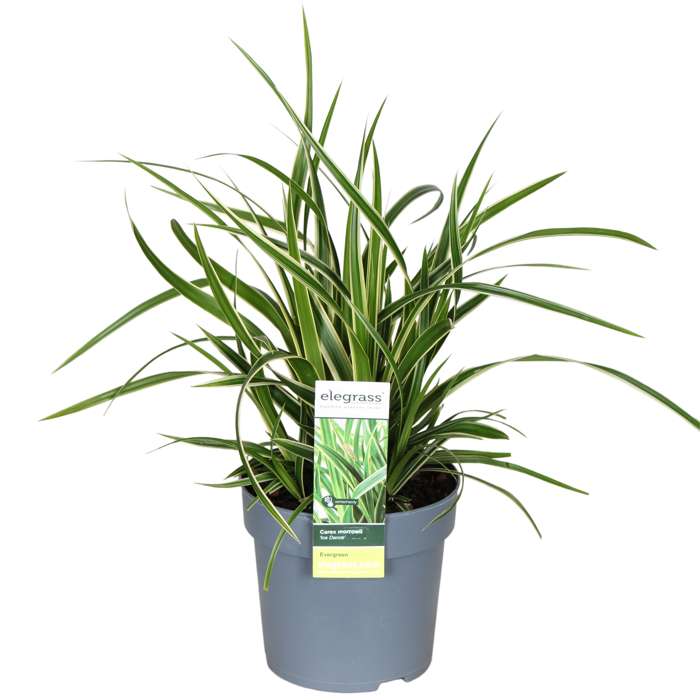 ‘Carex Ice Dance’, ook wel Zegge genoemd, is een wintergroen siergras. Dit wil zeggen dat de plant in de winter ook zijn blad behoudt. Dit is de reden dat de Carex al jaren een van de populairste siergrassen is. De bladeren zijn groen van kleur met een bonte bladrand. De plant doet het goed als vakbeplanting, in een border of in een sierpot. De ‘Carex Ice Dance’ bloeit met vrolijke geelachtige bloeiaren in het voorjaar en kan zo’n 60 cm hoog worden. We adviseren wel de Carex eens in de zoveel tijd een snoei beurt te geven. Dit doe je door in het vroege voorjaar de bruin geworden toppen weg te knippen tot 10 cm boven de grond. Het is niet per se nodig, maar je voorkomt dat oudere sprieten bruine vlekken krijgen. Na het terugknippen loopt deze soort weer fris uit en is jouw Carex mooier dan ooit!