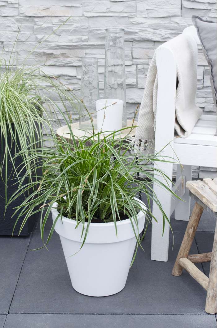 ‘Carex Ice Dance’, ook wel Zegge genoemd, is een wintergroen siergras. Dit wil zeggen dat de plant in de winter ook zijn blad behoudt. Dit is de reden dat de Carex al jaren een van de populairste siergrassen is. De bladeren zijn groen van kleur met een bonte bladrand. De plant doet het goed als vakbeplanting, in een border of in een sierpot. De ‘Carex Ice Dance’ bloeit met vrolijke geelachtige bloeiaren in het voorjaar en kan zo’n 60 cm hoog worden. We adviseren wel de Carex eens in de zoveel tijd een snoei beurt te geven. Dit doe je door in het vroege voorjaar de bruin geworden toppen weg te knippen tot 10 cm boven de grond. Het is niet per se nodig, maar je voorkomt dat oudere sprieten bruine vlekken krijgen. Na het terugknippen loopt deze soort weer fris uit en is jouw Carex mooier dan ooit!
