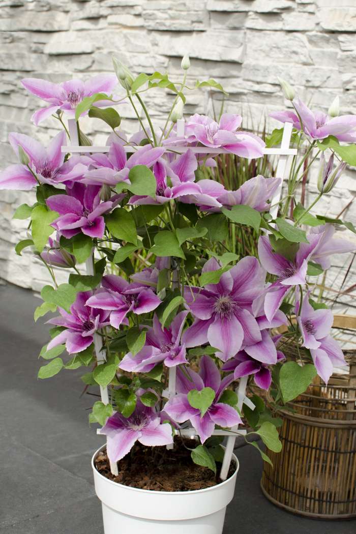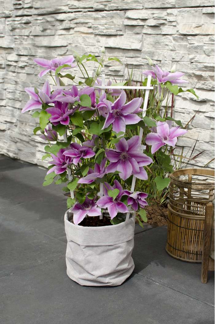 ‘Clematis Yuan’ is een zeer bijzondere Clematis die de gehele zomer doorbloeit. Van mei tot september kan je genieten van haar grote donkerroze gestreepte schermbloemen. Al in het eerste jaar zorgt de Clematis voor een oase aan bloemen. In tegenstelling tot de meeste Clematis soorten die 1 tot 2 maanden bloeien, kan je van ‘Yuan’ wel 5 maanden genieten. De clematis ‘Yuan’ wordt tegen een pergola of klimrek maximaal 180 cm hoog. Deze Clematis staat het liefst op een plek in de (half)volle zon. Het meest ideaal is een plek op de ochtendzon en/of avondzon. Doordat ‘Yuan’ een compact soort is kan deze ook neergezet worden in een pot op een balkon, terras of zelfs in een hangende mand. Om de Clematis beter te laten klimmen heeft deze een beetje hulp nodig. Het beste kun je de plant langs een rek, draad of stok omhoog leiden. Snoeien is niet noodzakelijk. Verwijder echter wel de dode en beschadigde twijgen begin maart. Je kan deze Clematis in het voorjaar tot maximaal 20 centimeter boven de grond terug snoeien.