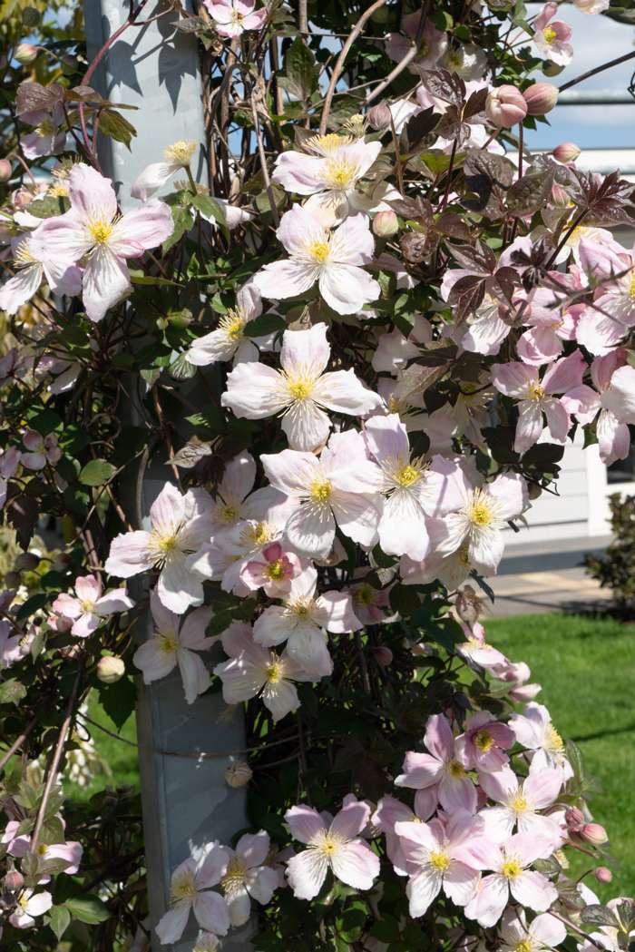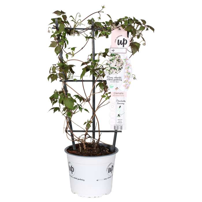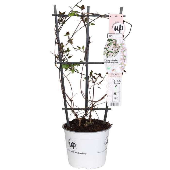 ‘Clematis montana Fenne’ kenmerkt zich door een langere en rijkere bloei en is beter bestand tegen ziektes dan de gewone montana soorten. Ook blijven ze een stuk compacter, zo’n 2 m tot 3 m hoog en kunnen ook in een ruime pot of bloembak staan en tegen een klimrekje aangroeien. Ze bloeien in de periode mei-juli met intens gekleurde redelijk kleine lichtroze bloemen die verkleuren naarmate ze ouder worden. Geef deze Clematis een plek in de volle zon of halfschaduw. Staat de Clematis in de volle zon dan is het belangrijk dat de wortels uit de zon blijven. Dit doe je door de kluit goed te bedekken en deze 10 tot 15 cm diep te planten. Na de bloeiperiode kan de plant tot op 50 cm teruggesnoeid worden. Door het snoeien blijft de plant jong en in vorm, maar snoeien is niet noodzakelijk. Vergeet ook niet om dode of oude takken volledig te verwijderen.