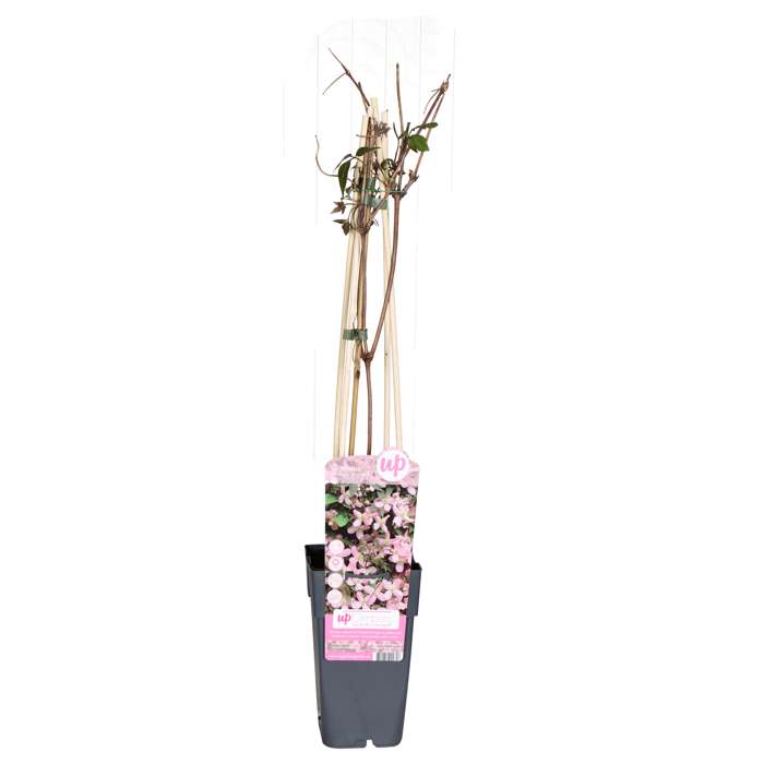 ‘Clematis Montana Fragrant Spring’ is een snelgroeiende en rijkbloeiende Bosrank. Deze klimplant bloeit in de maanden mei en juni met talloze lichtroze bloemen met opvallende gele meeldraden. Zeker als je de plant een zonnige standplaats geeft, draagt deze plant een zee van bloemen. De klimplant is perfect voor het begroeien van een pergola, maar ook langs een muur, schutting of rek kan hij prima staan. Hij heeft wel wat hulp nodig bij het klimmen, hij hecht zich namelijk niet vast. Je kan hem daarom om een draad of gaaswerk leiden. Koude temperaturen zijn verder geen probleem voor de winterharde klimplant. Een volwassen plant kan wel 5 meter hoog worden, maar is door middel van snoeien natuurlijk ook lager te houden. Snoei de plant bij voorkeur ná de bloei. Geef de clematis een plek in de volle zon of halfschaduw. Staat de Clematis in de volle zon dan is het belangrijk dat de wortels uit de zon blijven. Dit doe je door de kluit goed te bedekken en deze 10 tot 15 cm diep te planten.
