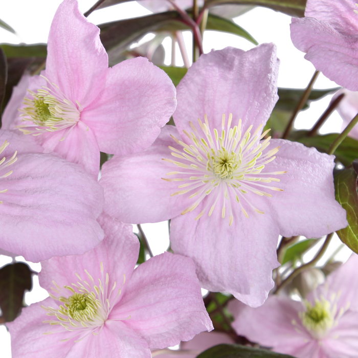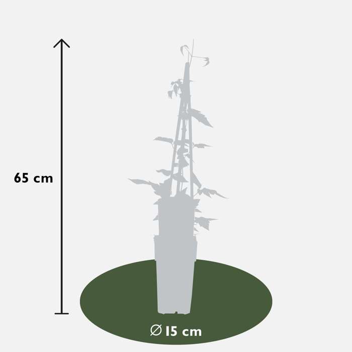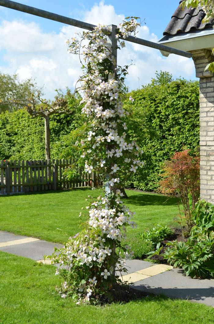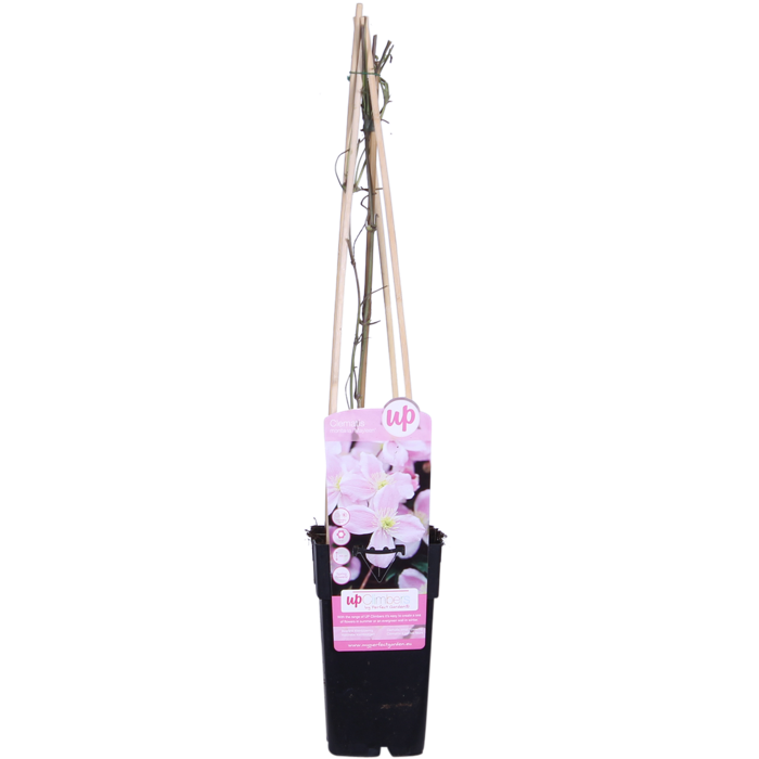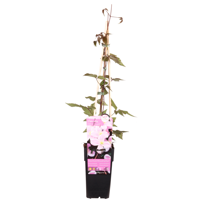 ‘Clematis montana Mayleen’ is een kleinbloemige bladverliezende klimplant met een krachtig opgaande groei. De bladeren zijn lancetvormig en gezaagd, eerst bronskleurig, later op het seizoen donkergroen. Deze bosrank bloeit in april en mei met kleine enkelvoudige roze bloemen met goudgele meeldraden. De Clematis montana ‘Mayleen’ is goed tot zeer goed winterhard, lokt vlinders en bijen en is geschikt voor muurbeplanting of pergola begroeiing. Een mooie blikvanger in het voorjaar! Plant de Clematis langs een rek of schutting en help de nieuwe uitlopers door ze netjes langs het rek te binden of door de schutting te leiden. Je kunt de montana het beste in de zomer snoeien. Zij bloeien namelijk op oud hout (takken van het jaar ervoor). In de zomer snoei je jouw Clematis dus eigenlijk in vorm voor de daaropvolgende lente. Vergeet ook niet om dode of oude takken volledig te verwijderen. Een goede snoei zorgt voor een rijkere bloei in het voorjaar. De Clematis houdt van een standplaats in de halfschaduw of volle zon en verlangt een neutrale tot kalkrijke, goed doorlaatbare grondsoort.