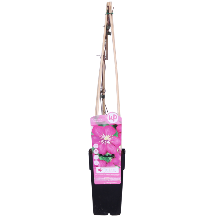 Clematis Ville de Lyon’ behoort tot de Patens groep. Deze groep clematissen bloeit met de grootste bloemen. Ze bloeien twee keer per jaar. De eerste bloei vindt plaats rond mei-juni met volle, donkerroze bloemen en een tweede bloei volgt tussen juli en september. Snoeien hoeft niet maar kan wel wanneer deze klimplant bijvoorbeeld te groot wordt. Dit kan bij de Clematis het beste na de eerste bloei, omdat deze bosrank bloeit op oud hout. De klimplant heeft wel draden of een hekwerk nodig, zodat de uitlopers zich daaraan kunnen bevestigen. Het liefst staat deze clematis op een zonnige standplaats, maar halfschaduw verdraagt de clematis ook goed. Dit maakt de clematis geschikt voor de meeste plekken in je tuin, erg handig! De wortels van de clematis moeten wel in de schaduw en koelte staan. Zorg dat er altijd iets voor de voet van de plant groeit en plant de clematis dieper in de grond. Zo wordt hij beschermd tegen de vervelende verwelkingsziekte die de bovengrondse stengels kan aantasten, onder de grond blijft de plant gezond.