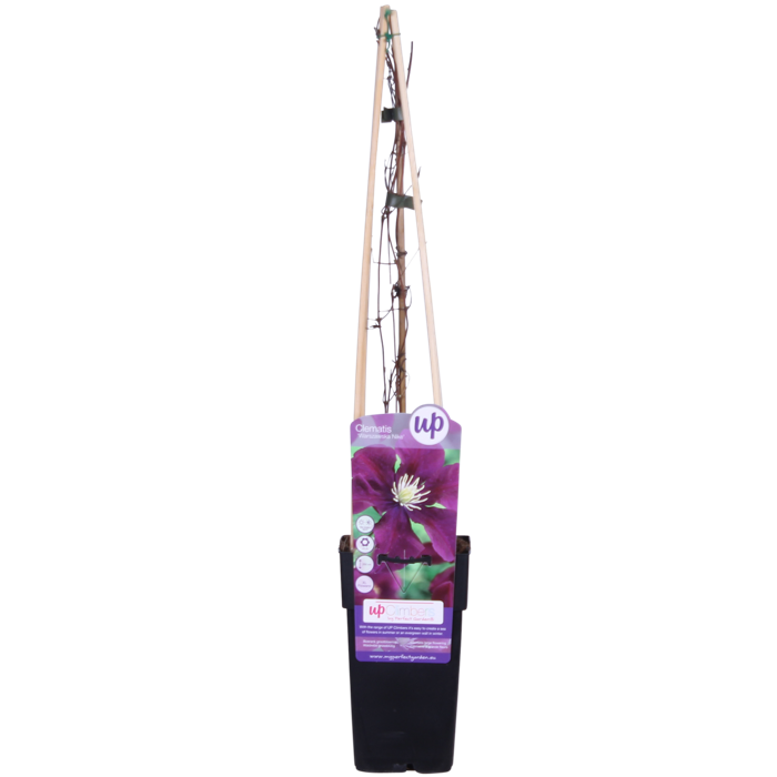 ‘Clematis Warszawska Nike’ is een grootbloemige klimplant met grote donkerrode bloemen. Hij is daardoor een echte blikvanger in de tuin. Dit sterke soort bloeit twee keer per jaar. Nadat de clematis voor de eerste keer bloem heeft gegeven kun je deze het beste terug snoeien, zodat zij nogmaals voor de tweede keer gaat bloeien De nette en compacte groei maakt deze klimmer geschikt voor zowel grote als kleine tuinen. Ze groeit zo’n 1,5 meter per jaar, en wanneer gewenst elk jaar terug snoeien tot maximaal 25 cm boven de grond. Om de clematis beter en mooier te laten klimmen heeft deze een beetje hulp nodig. Het beste kan je de plant dan ook langs een rek, draad of stok omhoog leiden. De clematis doet het zowel in de halfschaduw als in de zon erg goed. Dit maakt de clematis geschikt voor de meeste plekken in je tuin. Bij meer zon zal de clematis wel rijkelijker bloeien.