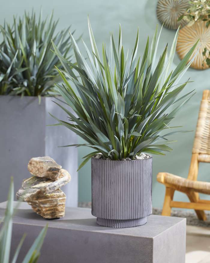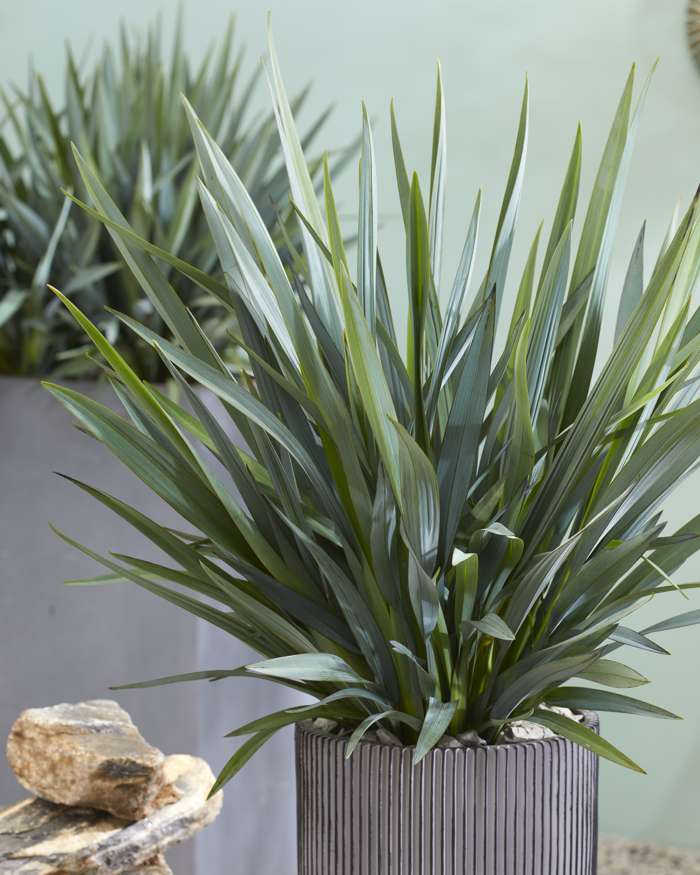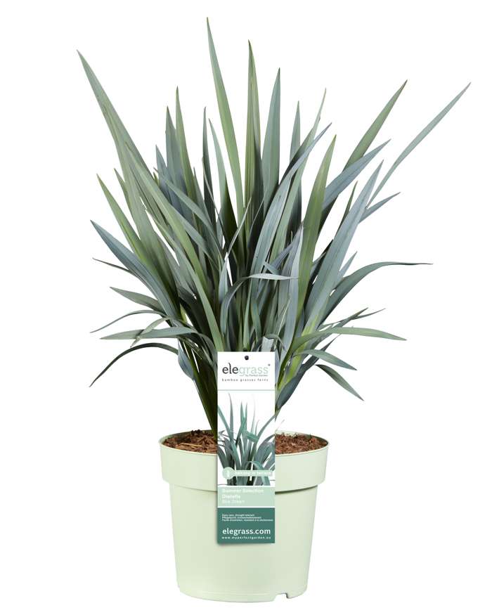 ‘Dianella revoluta Blue Stream’ in het Nederlands ook wel Tasmaanse Vlaslelie genoemd. Het is een vaste plant die ook in de winter groen blijft. De plant heeft mooie, brede lichtblauwe bladeren die een mooi contrast vormen in de tuin met andere bloeiende of groene planten. Hij heeft een goede, opgaande groei en vertakt goed. In warmere streken bloeit de plant in mei-juni met blauwe bloemen. In de wat koudere streken bloeit de plant minder vaak. Plant ‘Blue Stream’ bij voorkeur in de zon in een goed doorlaatbare grond. Deze groenblijver is droogte- en hitteresistent en is zeer goed toe te passen voor massabeplanting, in gemengde containers, als accent plant of in de tuin. Winterhard tot ca. -7 ºC. Bij voorkeur in de winter beschermen tegen de kou.
