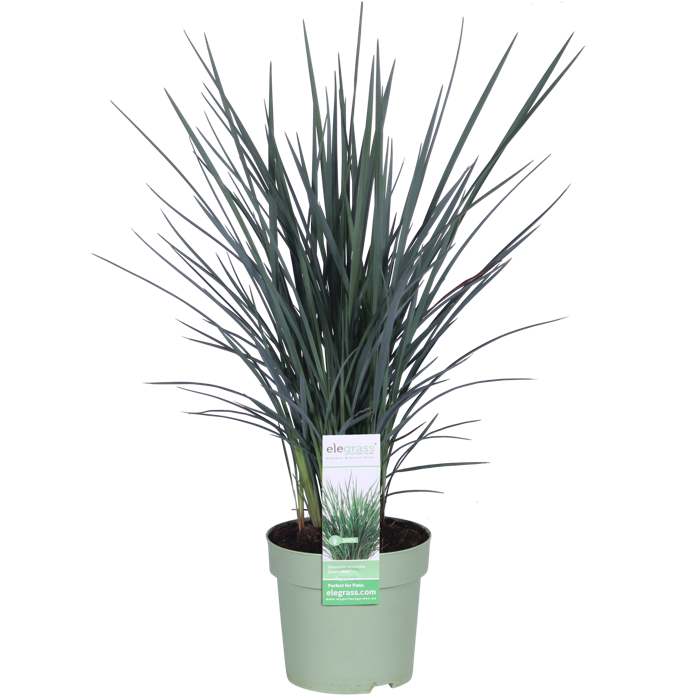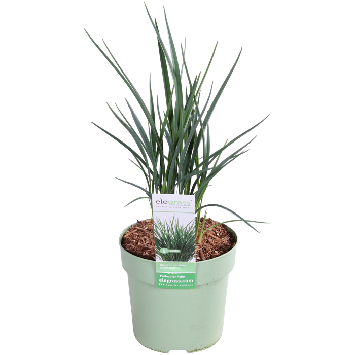 ‘Dianella Coolvista’, een echte terrasplant voor de zomer! Heeft weinig water nodig en kan goed tegen de zon. Het is een vaste plant met smalle, lineaire bladeren die er grasachtig uitziet. De plant heeft het hele jaar door zijn blauw-grijze bladeren. Hij heeft een stekelige opgaande groei en vertakt gemakkelijk. Tijdens de bloei is beter zichtbaar dat het hier niet om een gras gaat omdat de bloem helemaal anders is. Er verschijnen opstaande vertakte bloemstengels waaraan blauw-paarse bloemen komen die wat afhangen. Er kunnen na de bloei staalblauwe bessen aan de plant komen. De plant is droogte/hittebestendig en geeft de voorkeur aan een goed waterdoorlatende grond in de volle zon. Deze soort is niet winterhard en heeft bescherming nodig om de winter te kunnen overleven. Hij is ideaal om in een sierpot te zetten op je terras of balkon. Je kunt de plant ook lekker makkelijk combineren met andere planten in een mooie gemengde plantenbak.