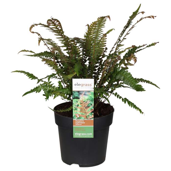 ‘Dryopteris erythrosora Brilliance’ is in Nederland bekend onder de naam Rode sluiervaren. Deze Rode sluiervaren dankt zijn naam aan de mooie warme oranje tinten waarmee het blad in het voorjaar uitloopt. Later in het jaar verkleurt het blad steeds meer naar groen. Het blad van de varen is stevig en glanzend. Bloeien doet deze plant niet. Zet voor de mooiste bladverkleuring deze Rode sluiervaren op een plek in de halfschaduw. De grond moet humusrijk zijn en licht vochtig. Deze varensoort is bladhoudend en winterhard. De hoogte na 10 jaar is 50 cm. Varens zijn onmisbaar in schaduwrijke tuinen. Waar veel andere planten niet willen groeien, voelen zij zich het beste thuis. Bij de varen hoef je enkel de lelijke en afgestorven bladeren te verwijderen na de winter. De varen is makkelijk in onderhoud en geeft jouw tuin een mooie sierwaarde.