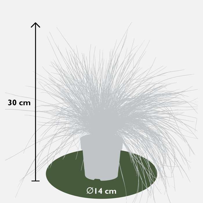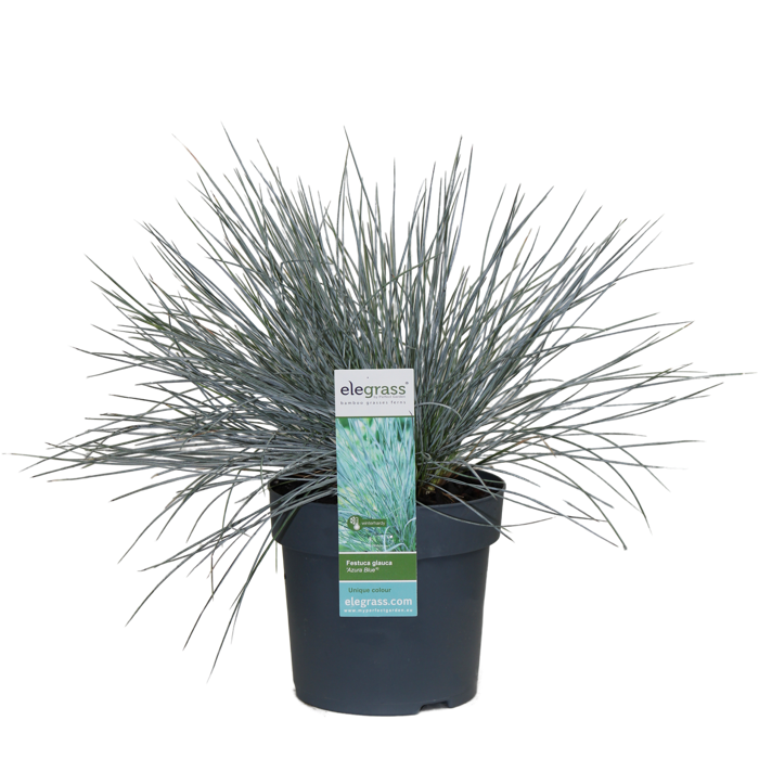 ‘Festuca Glauca Azura Blue’, ook wel blauw schapengras genoemd, is een opvallende verschijning. Dit felle zilver-blauwkleurige gras geeft een bijzonder kleuraccent aan jouw tuin! Het schapengras is winterhard en wintergroen en zorgt dus het hele jaar door voor een prachtig gezicht. Door zijn sierwaarde is deze plant geschikt voor elke tuin, van rotstuin tot moderne tuin. In de maanden juni en juli verschijnen er mooie roomkleurige pluimen in het schapengras. Deze blijven bloeien tot ver in de winter. Je kunt de ‘Festuca’ beter niet snoeien maar ‘kammen’. Hierbij haal je met de hand de lelijke, bruine en loszittende sprieten uit de plant. Het is aan te raden om in het vroege voorjaar de oude bloemen uit de plant te knippen om plaats te maken voor nieuwe bloemen. De ‘Festuca’ wordt maximaal 50 cm hoog en is dus een compacte groeier.