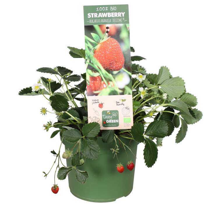 ‘Fragaria x ananassa Delizzimo’ is een makkelijk te kweken aardbeienstruik. De ‘Delizzimo’ aardbeien plant bloeit van april tot augustus met witte bloemen. Daarnaast is hij ook nog eens doordragend en geeft hij vruchten voor een lange periode. De plant zorgt voor heerlijke grote, zoete en gezonde vruchten. Aan het eind van de bloeiperiode kan je de plant het beste terugsnoeien tot 10 cm boven de grond.De aardbei is makkelijk te kweken in de moestuin of op je terras of balkon. De ‘Fragaria’ kun je in de volle grond plaatsen, in een sierpot of in een plantenbak aan je balkon of schutting. Lekker vers gekweekte aardbeien uit eigen tuin!