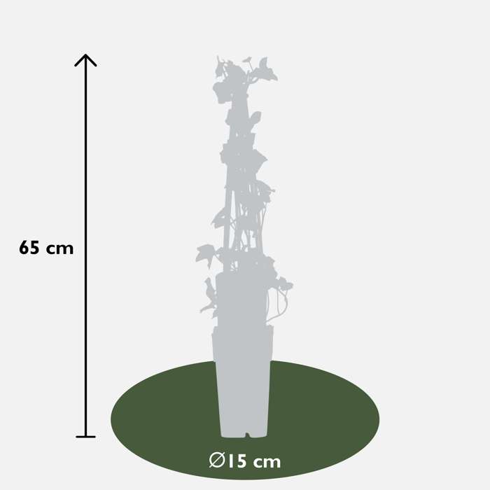 ‘Hedera hibernica’ is een van de bekendste en meest aangeplante klimop. De reden hiervoor is dat deze klimplant zeer gemakkelijk is in onderhoud, snel groeit en mooi groen blijft in de winter. Hij is geschikt voor zowel de zon als in de schaduw en groeit in iedere grondsoort. Met de frisse groene, verspreid staande bladeren is deze plant geschikt voor het camoufleren van een muur, het opvrolijken van een schutting of het bekleden van een hekwerk. Als er niets te klimmen valt, dan kruipen de stengels over de grond en maken ze wortels aan waarmee ze grote afstanden kunnen afleggen. Dit maakt de klimop ook geschikt als bodembedekker. Wanneer de plant tot de juiste hoogte is geklommen, kan er direct begonnen worden met snoeien. Door het snoeien van de ‘Hedera hibernica’ geef je het signaal aan de plant om meer in de breedte te gaan groeien. Door dit te herhalen krijgt de jonge klimplant een snellere blad bedekking en wordt hij snel mooi vol. De klimop kan het gehele jaar door gesnoeid worden. Let er op dat deze klimop zich niet gaat hechten aan het houtwerk van je huis, dat laat vervelende sporen na als de klimplant verwijderd wordt.