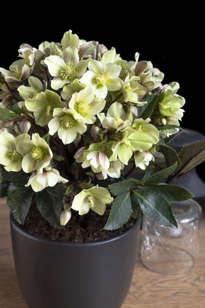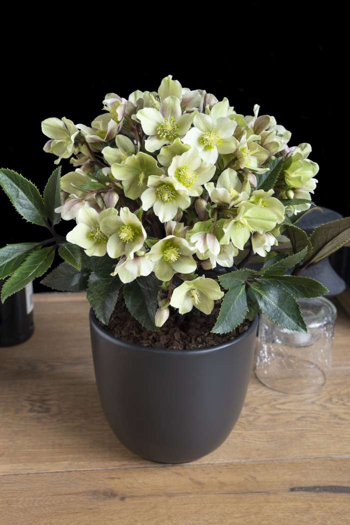 “‘Helleborus Guess’ ook wel lenteroos genoemd brengt in de winter en het vroege voorjaar kleur in je tuin of op het terras. Doordat de helleborus in de winter en het vroege voorjaar als een van de weinige planten bloeit, is deze ook aantrekkelijk voor de eerste bijen die ontwaken uit de winterslaap. De plant is zeer eenvoudig in gebruik zowel in de tuin als op het terras. De helleborus bloeit met roze-groenachtige bloemen en heeft groen gekarteld blad. Snoei de lelijke bladeren na de winter tot de grond af en de plant zal weer in het voorjaar uitlopen met nieuwe bladeren. Deze tuinplant staat niet graag in de volle zon, maar groeit goed op een plek met ochtend- en of avondzon. De helleborus staat het liefst op een beschutte plaats in een humusrijke, vochthoudende bodem en stelt weinig eisen aan de grondsoort